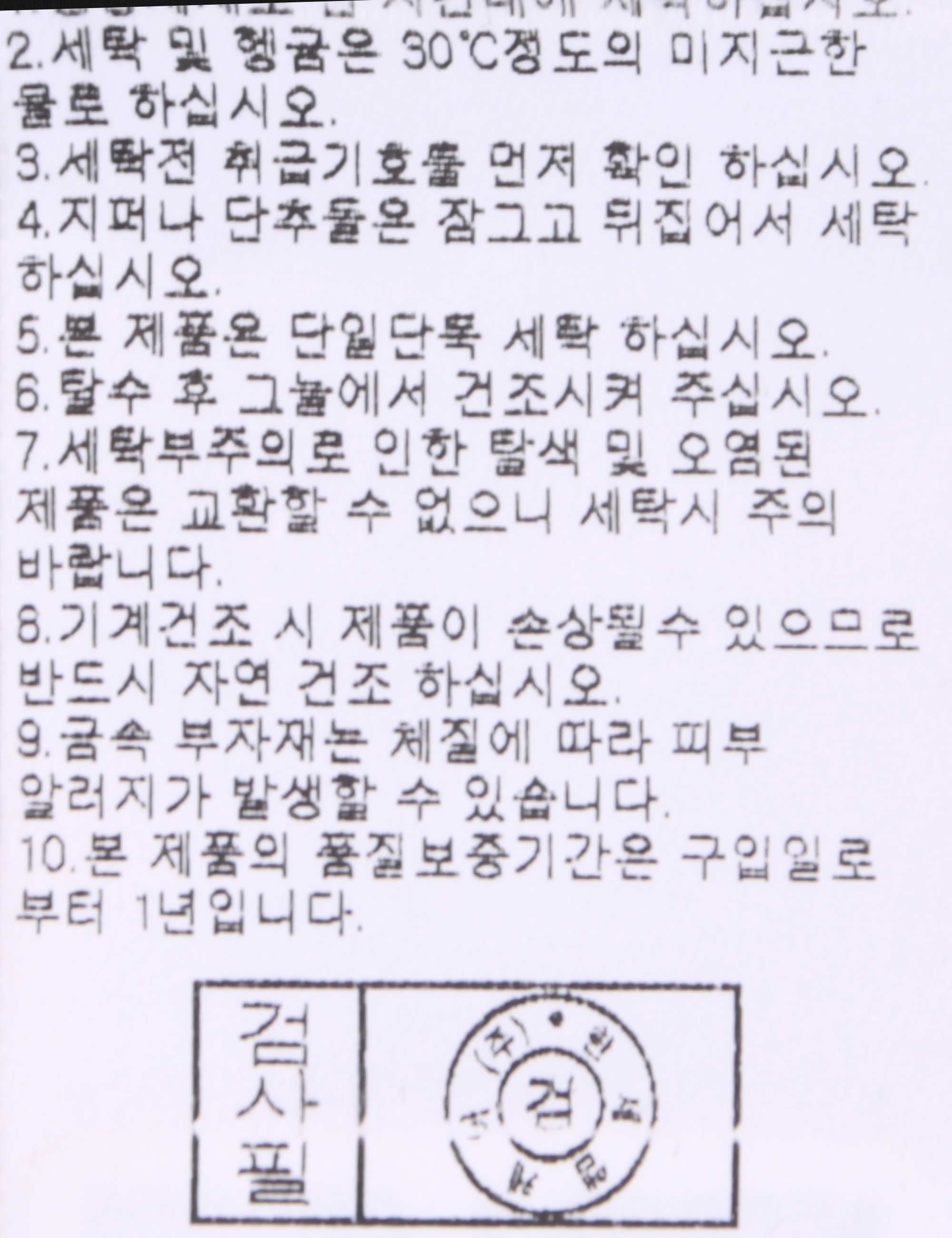 세탁방법 및 취급시 주의사항 중성세제로 단 시간내에 세탁하십시오.(케어라벨참고)