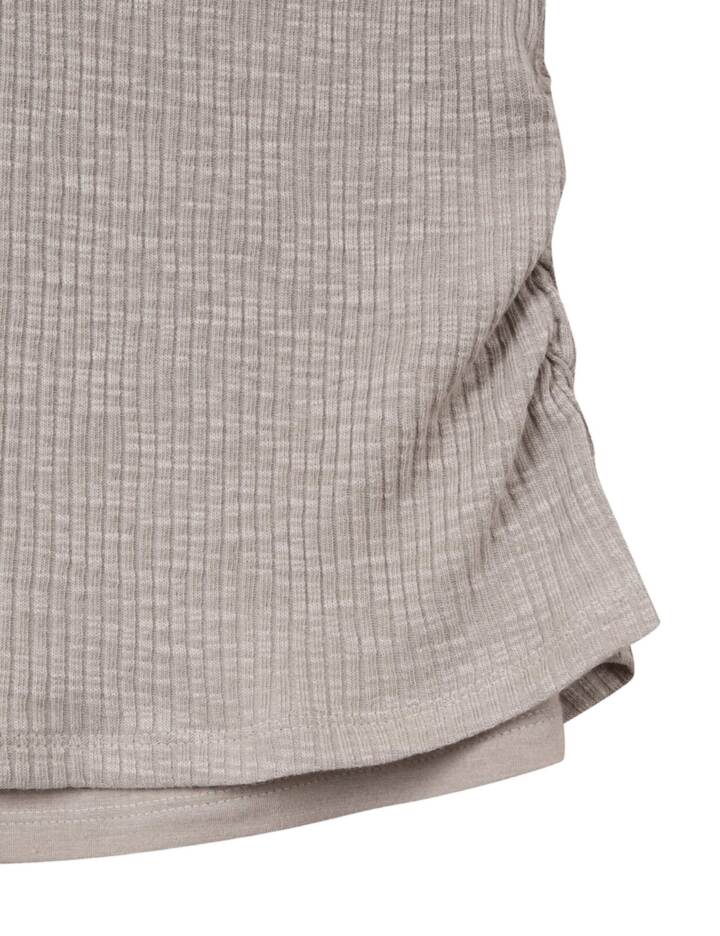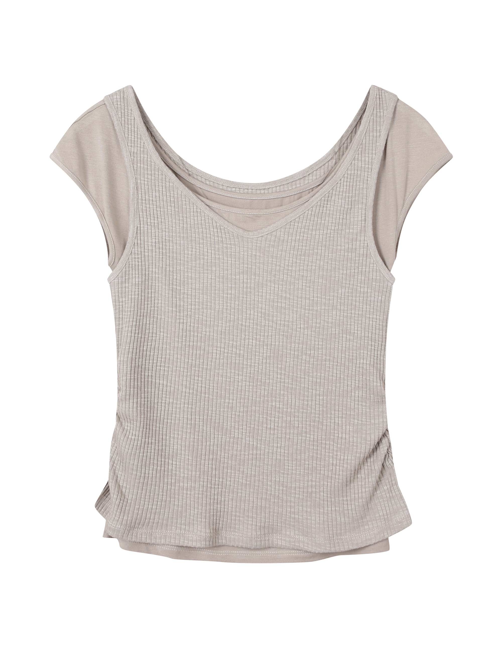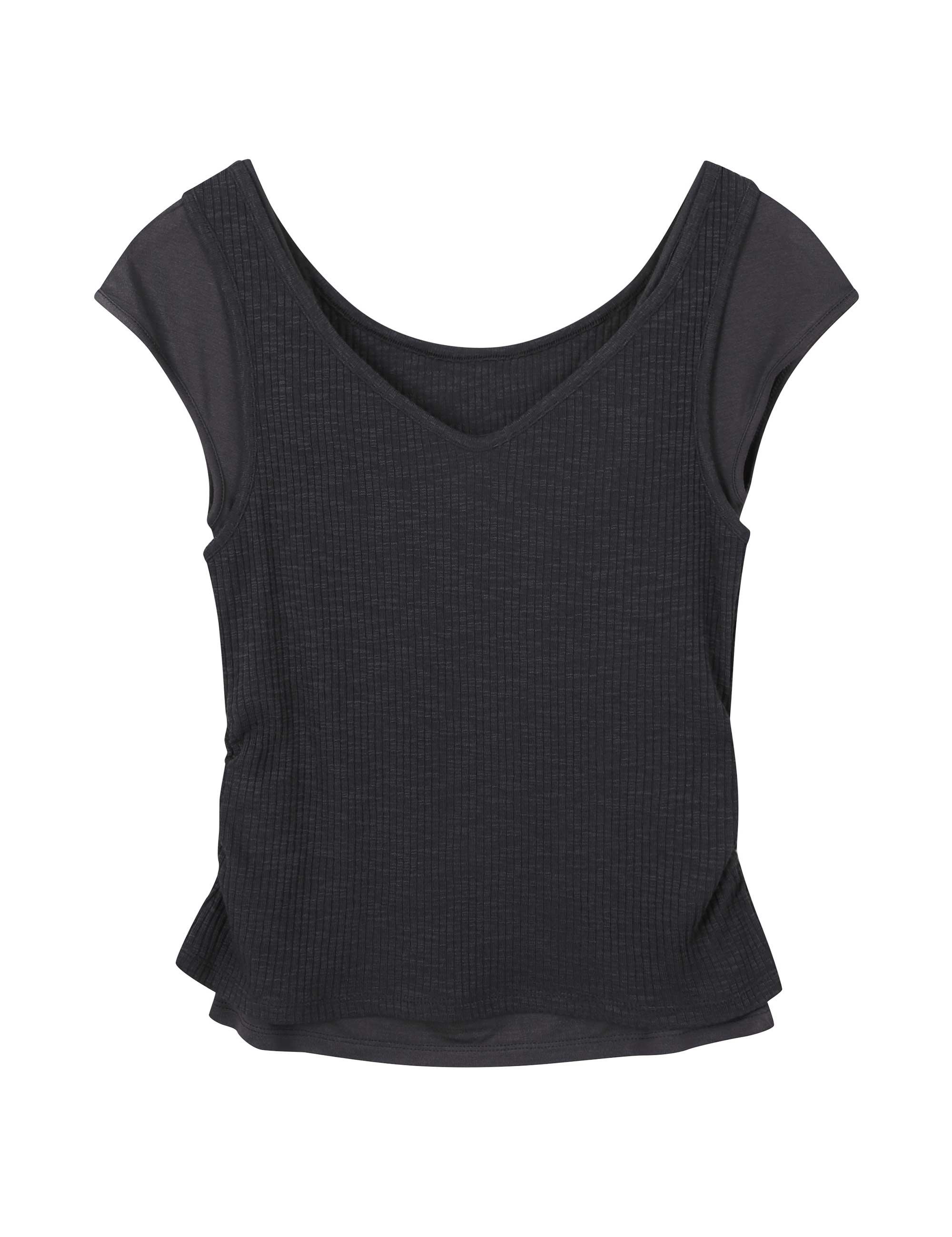 슬럽 골지와 모달스판을 레이어드해 편안함과 체형 보정 효과를 더한 여성용 셔링 반팔 티셔츠