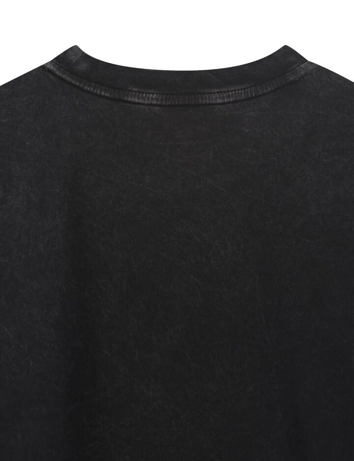 Q: 기장감이 어느 정도인가요? A: 트렌디한 크롭 기장으로 제작되어 하이웨이스트 하의와 매치했을 때 가장 예쁜 실루엣을 연출합니다. Q: 비침이 심한 편인가요? A: 비침이 낮은 수준의 보통 원단을 사용하여 단독 착용 시에도 큰 부담 없이 편안합니다. Q: 루나 다잉 제품의 특징이 무엇인가요? A: 특수 염색 공정을 통해 자연스러운 물 빠짐과 빈티지한 색감을 구현한 것이 특징입니다. Q: 세탁은 어떻게 하는 것이 좋나요? A: 면 100% 소재와 프린팅 보호를 위해 찬물에서 가볍게 손세탁하시는 것을 권장합니다. Q: 신축성이 있나요? A: 적당한 신축성을 가진 면 소재로 활동 시 불편함 없이 편안하게 착용할 수 있습니다.