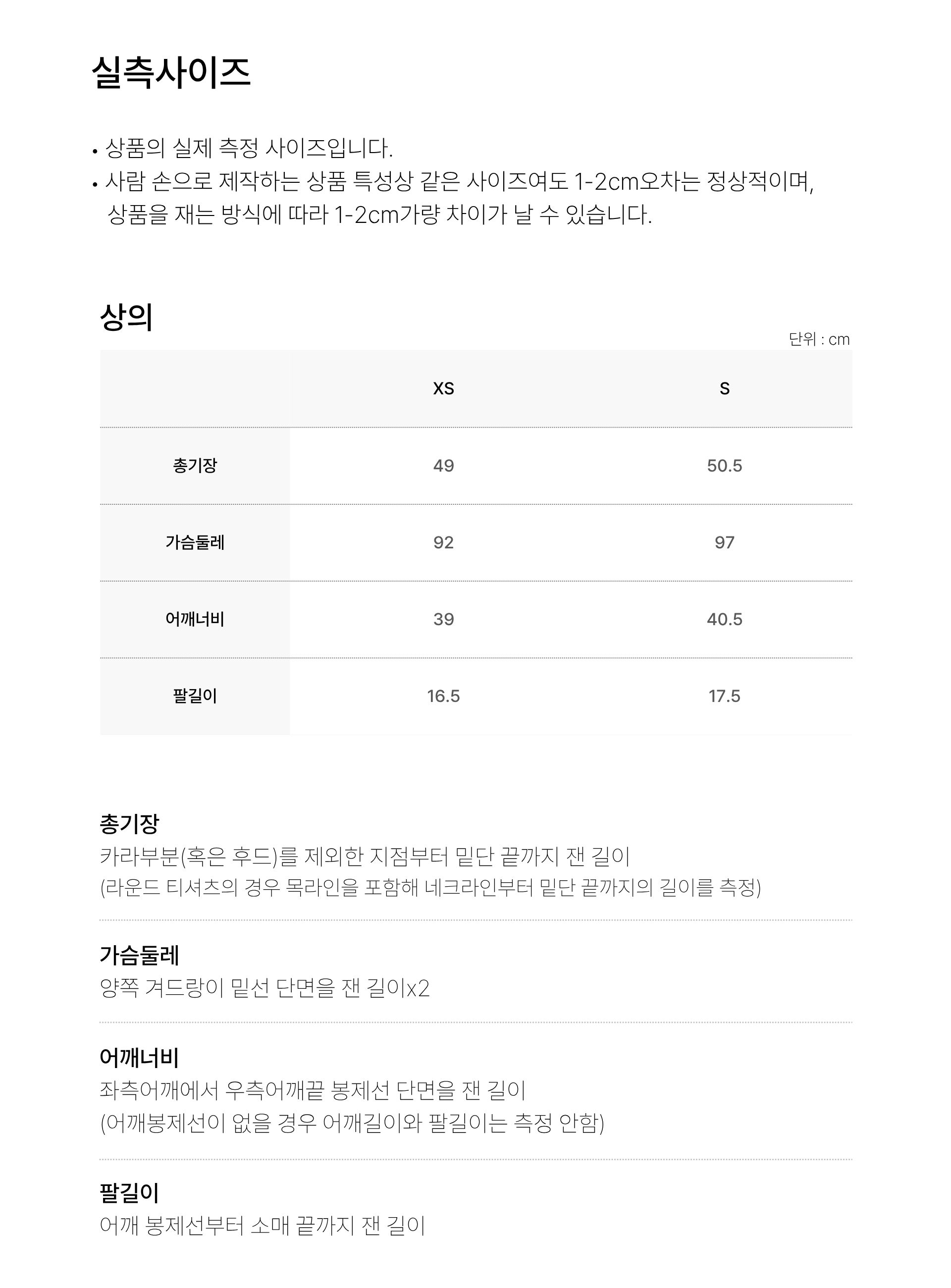 치수 XS,S