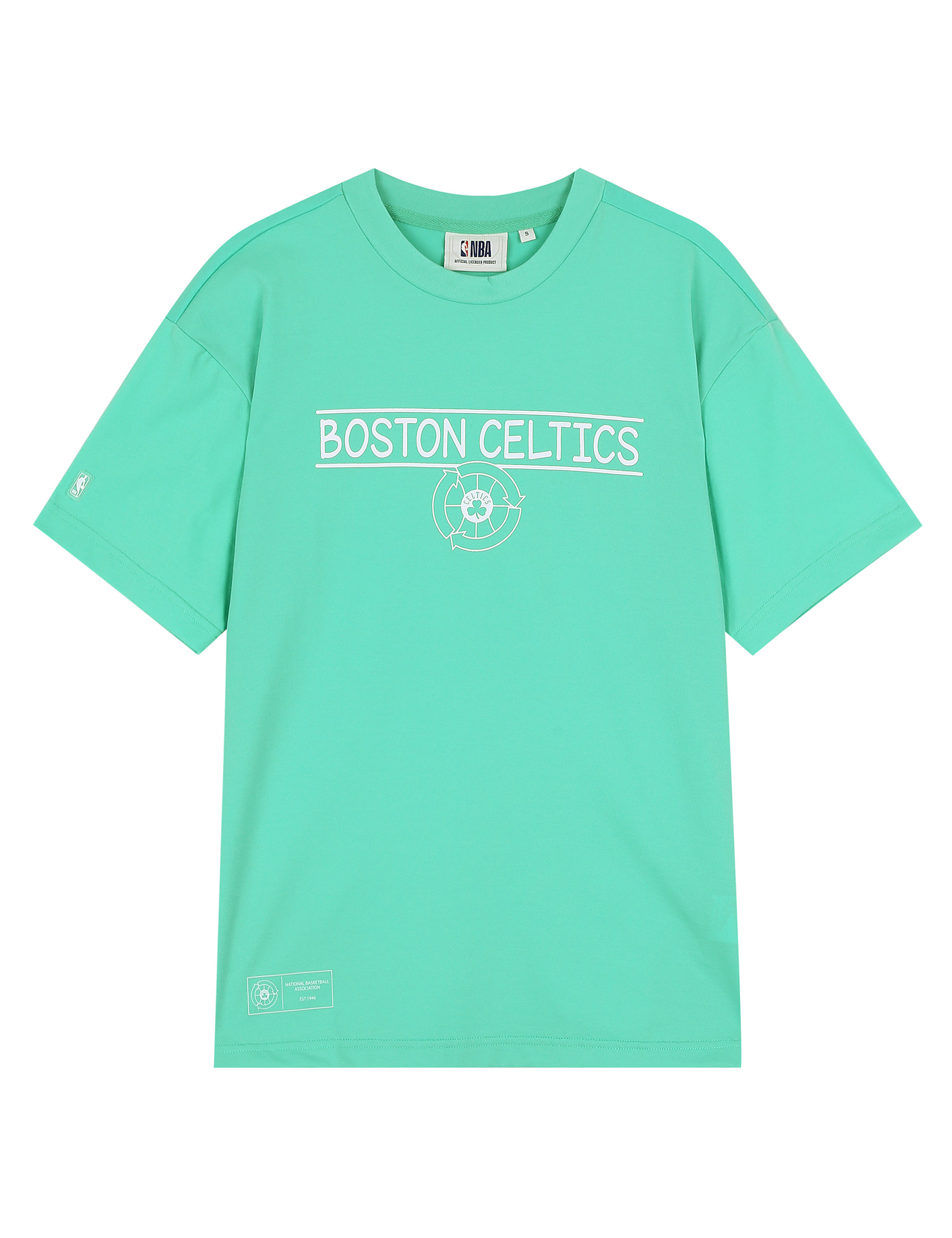 패션업계에서 트랜드인 환경이슈를 BOSTON CELTICS팀과 연관지어 디자인으로 풀어낸 NBA GREEN 시리즈의 반팔 티셔츠루즈 핏(LOOSE FIT)
