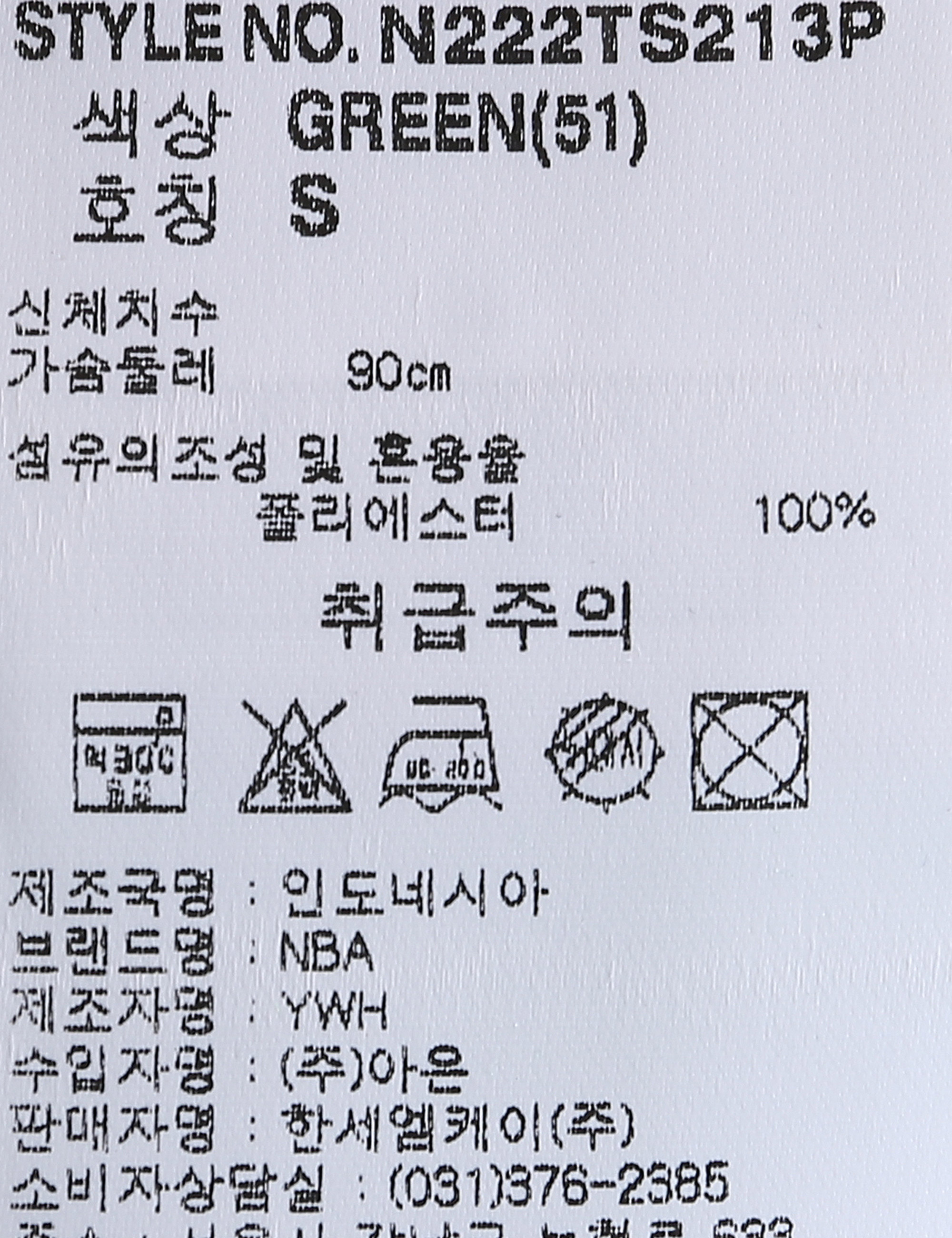 | 상품명 | NBA GREEN 스몰레터 티셔츠(N222TS213P) |