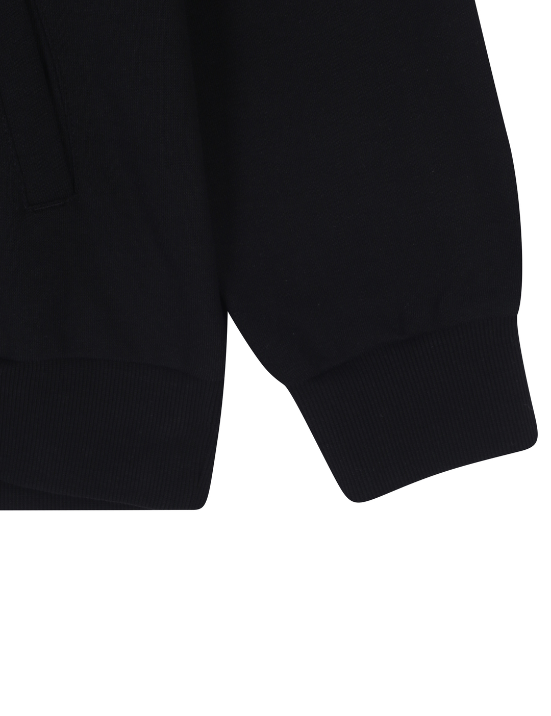 가슴에 조직감있는 와펜을 작업하고 등판에 레터가 포인트가되는스타일로 다양한 연출이 가능한 반집업 맨투맨
