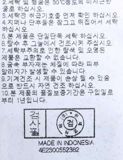 | 세탁방법 및 취급시 주의사항 | 본 제품은 손세탁 하십시오.(케어라벨참고) |