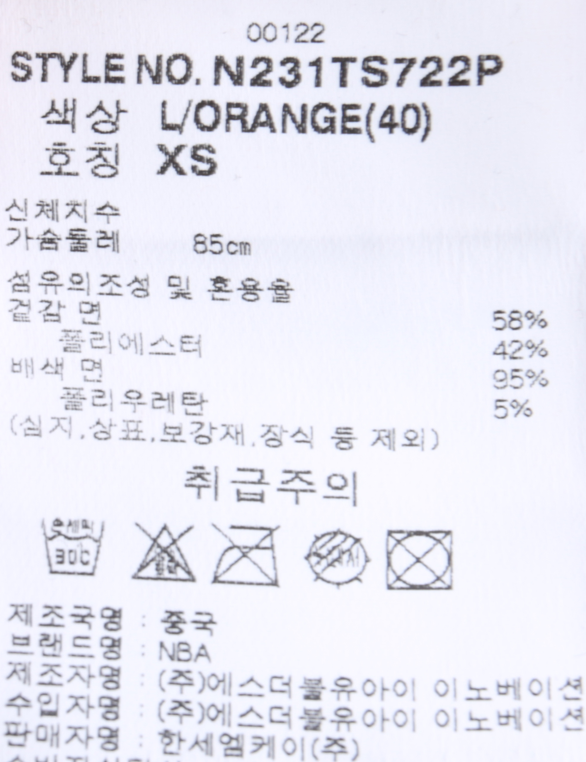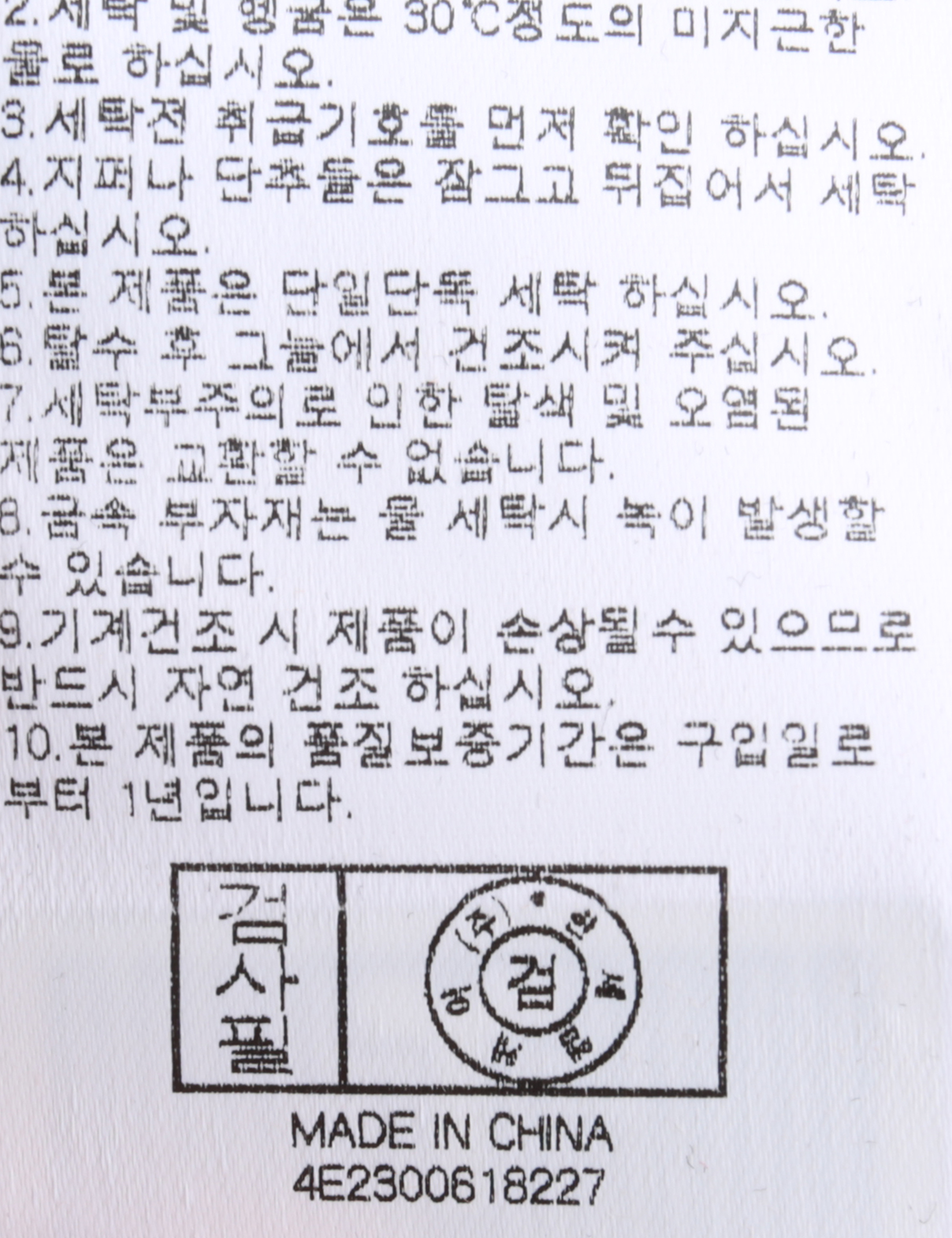 | 세탁방법 및 취급시 주의사항 | 본 제품은 손세탁 하십시오.(케어라벨참고) |