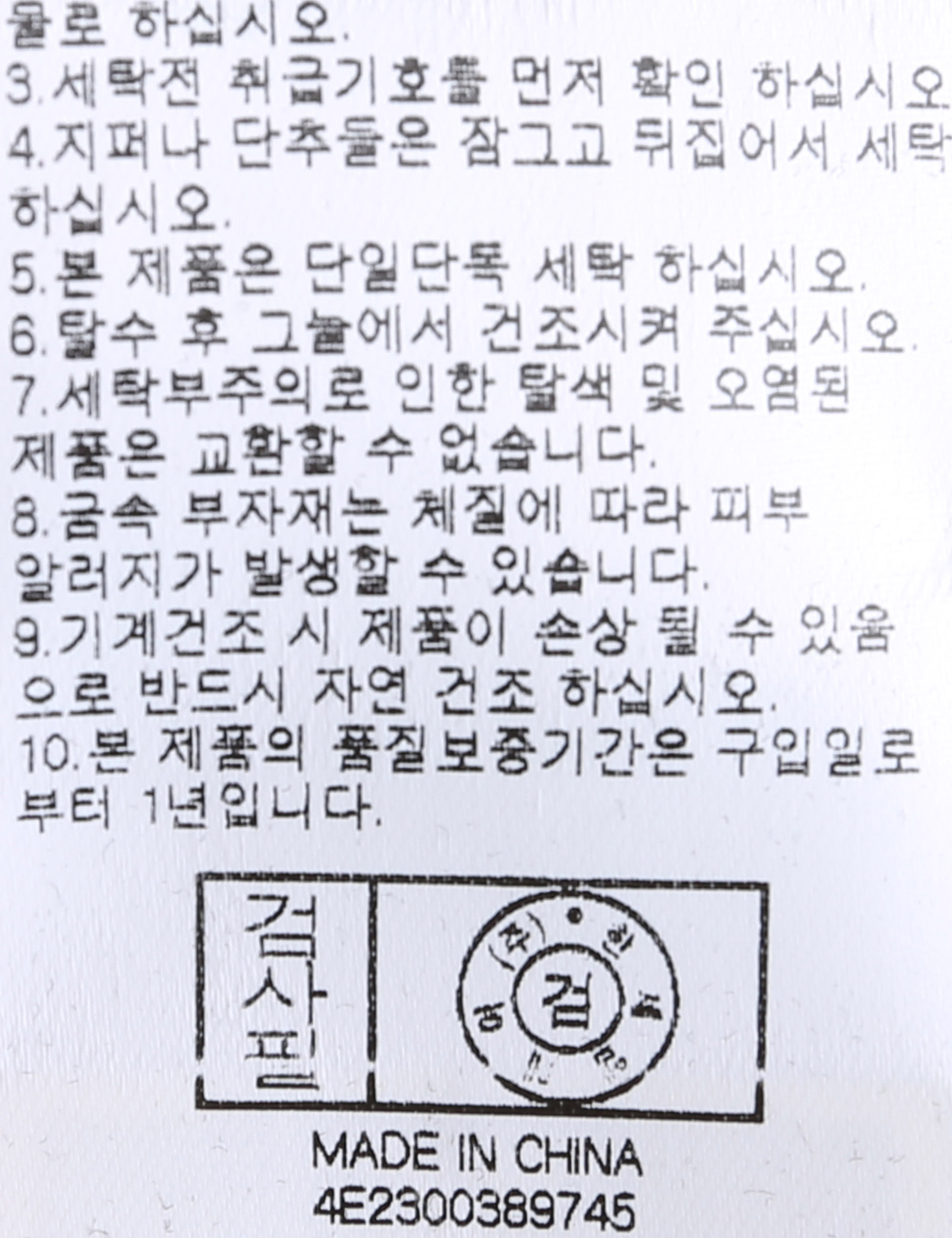 | 세탁방법 및 취급시 주의사항 | 중성세제로 단 시간내에 세탁하십시오.(케어라벨참고) |