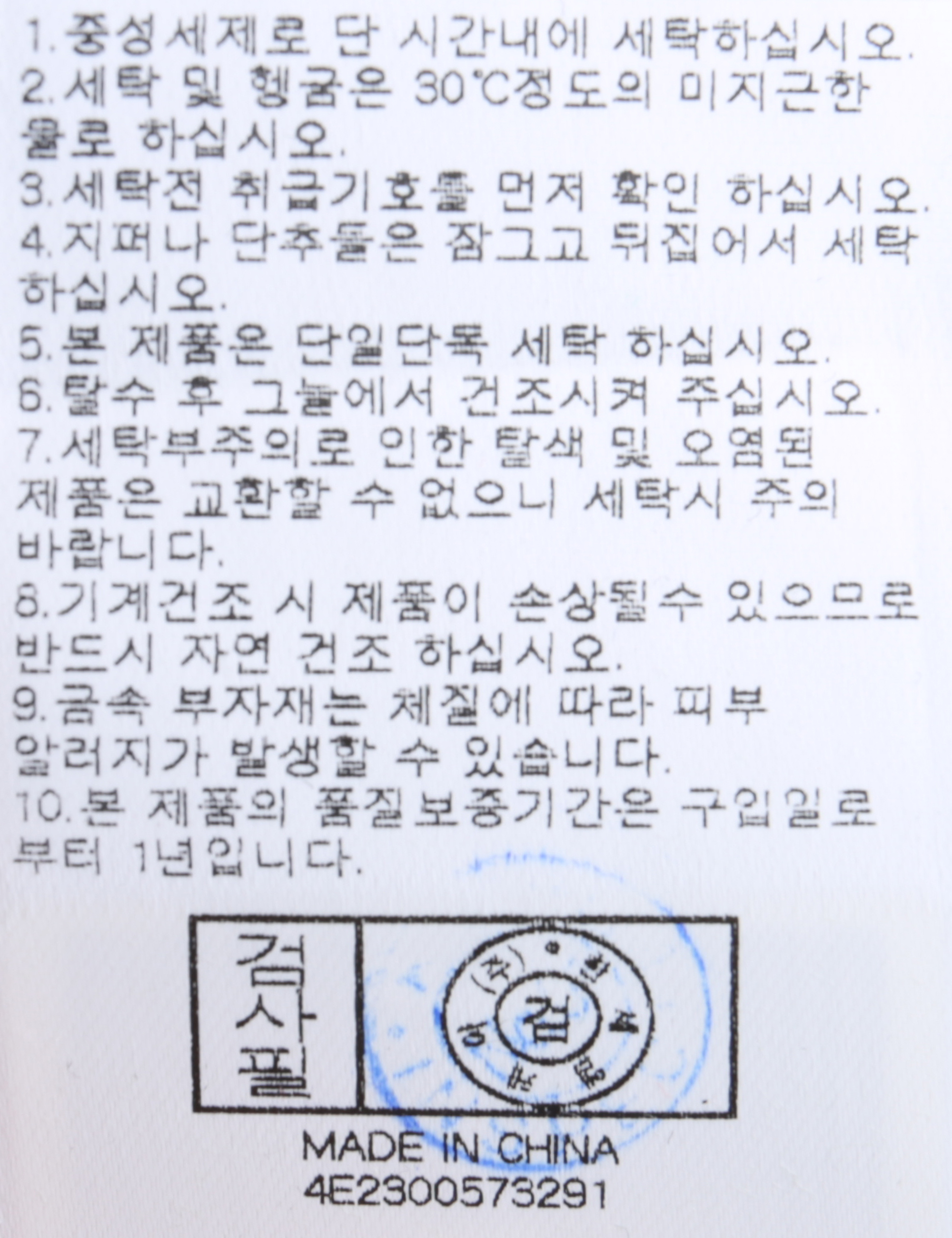 세탁방법 및 취급시 주의사항 중성세제로 단 시간내에 세탁하십시오.(케어라벨참고)