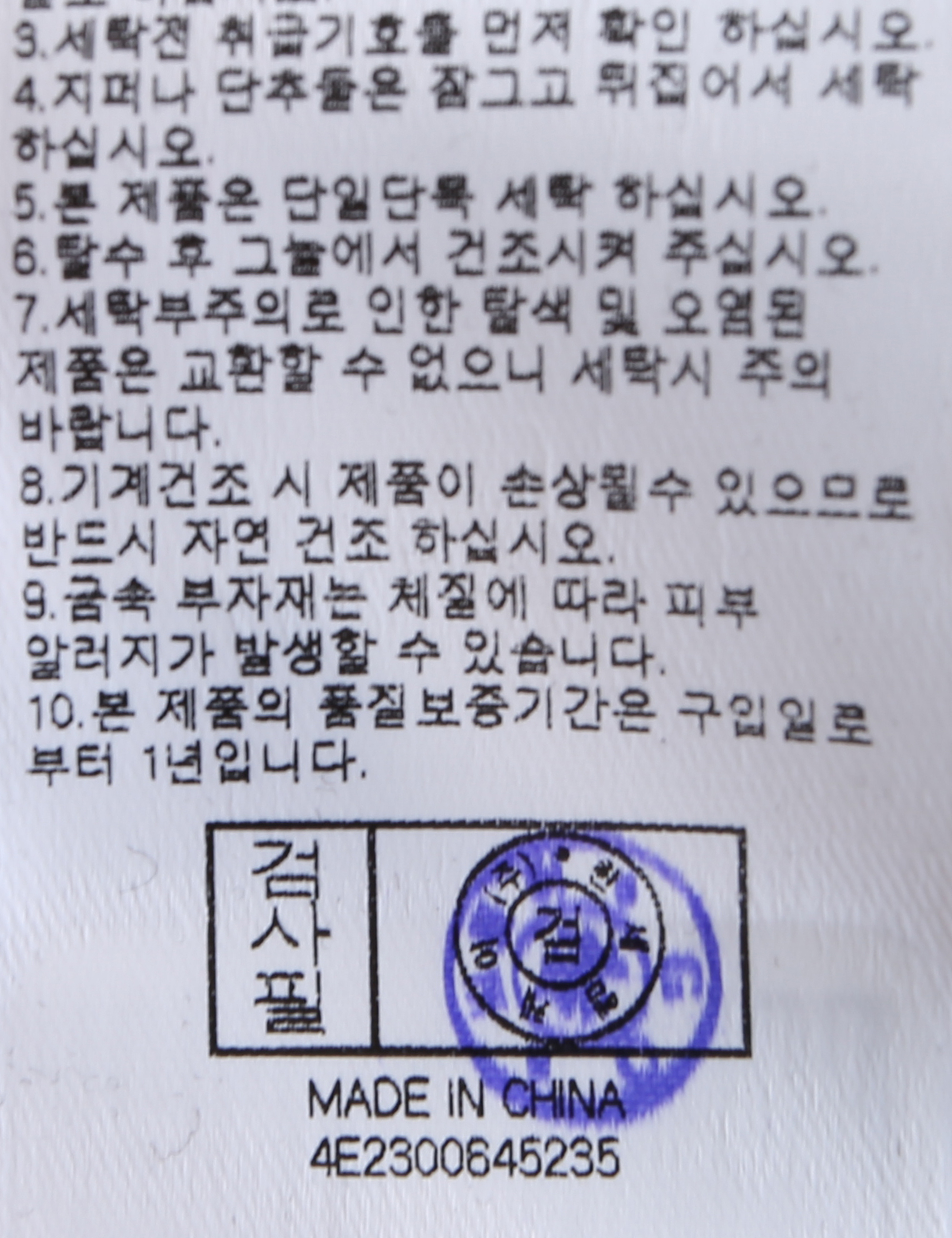 | 세탁방법 및 취급시 주의사항 | 중성세제로 단 시간내에 세탁하십시오.(케어라벨참고) |