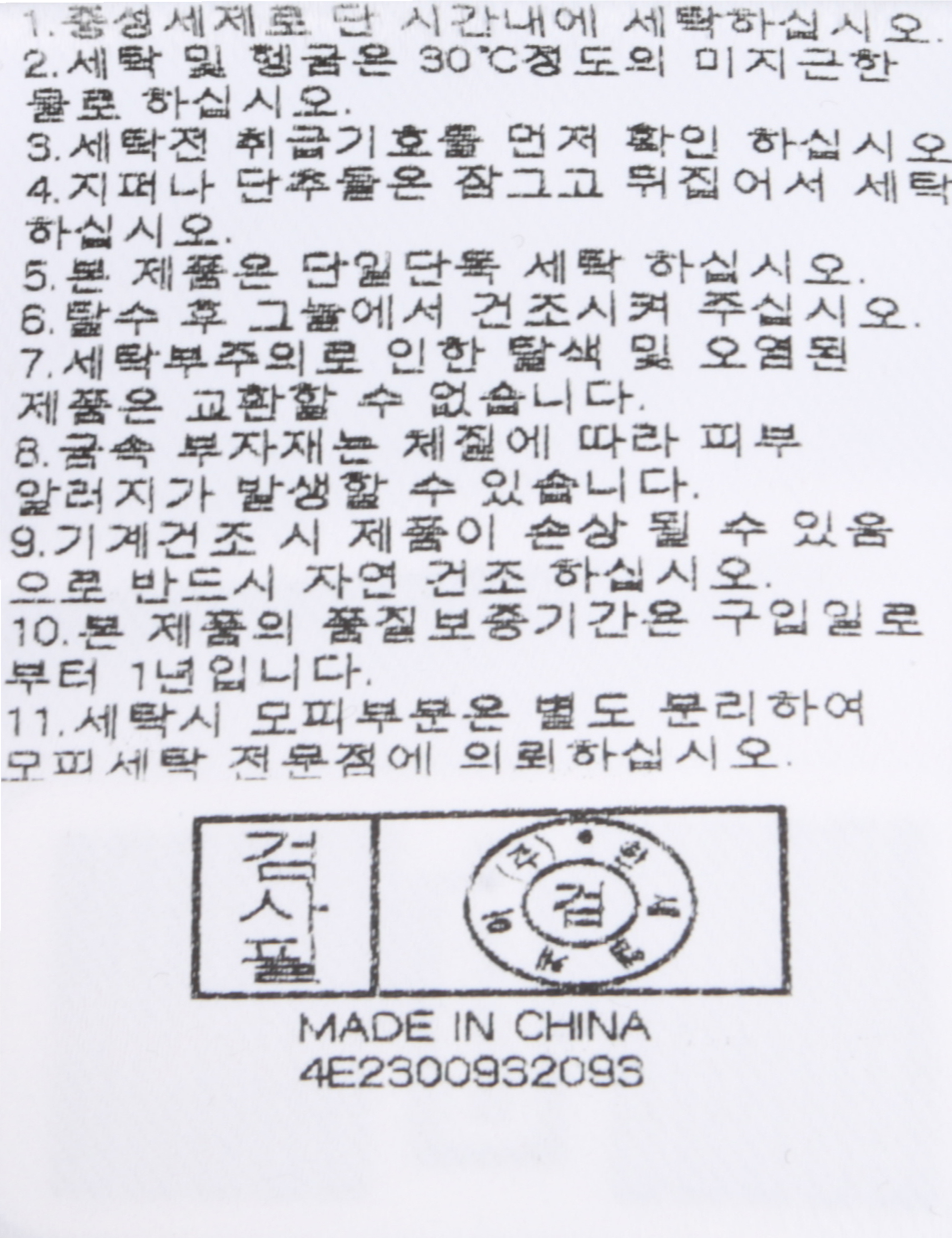 | 세탁방법 및 취급시 주의사항 | 본 제품은 손세탁 하십시오.(케어라벨참고) |