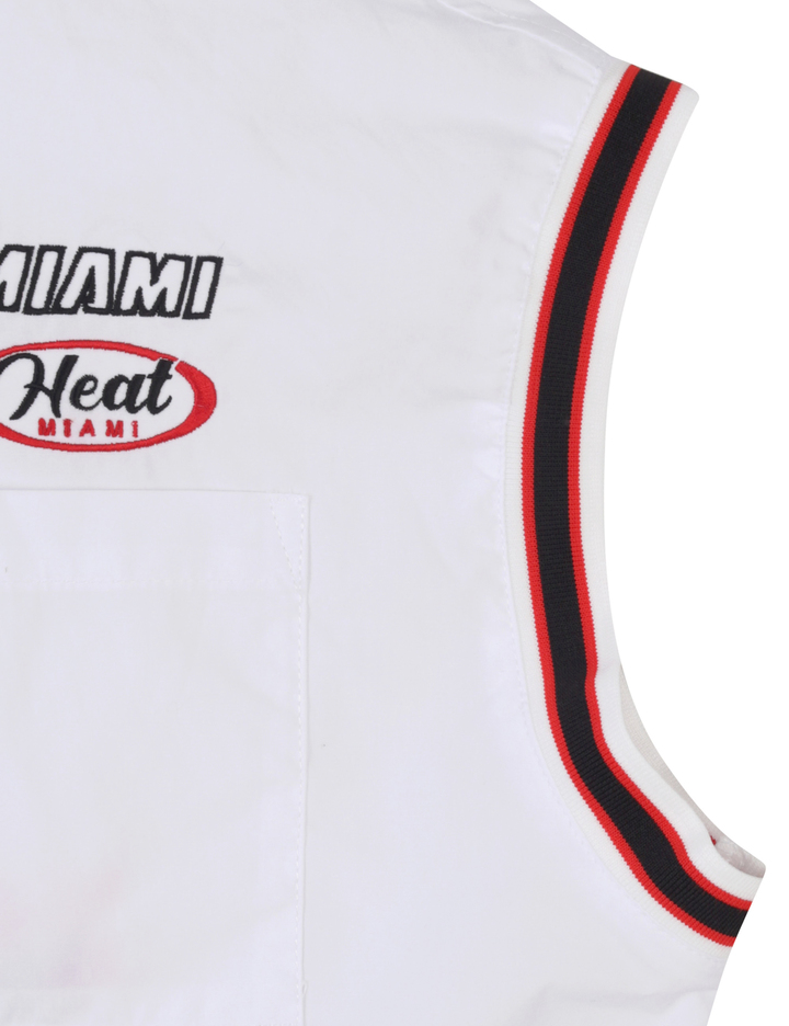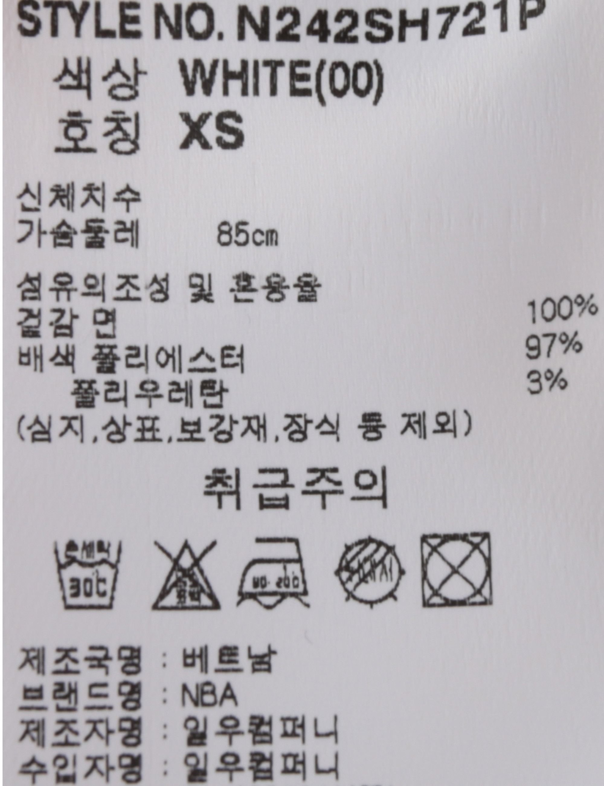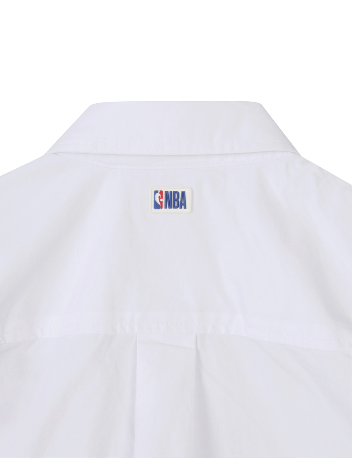 뒷넥에 NBA 로고맨을 와펜으로 작업하여 소매단 끝에 NBA 시그니처 로고맨 디테일을 살림