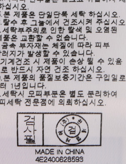 | 세탁방법 및 취급시 주의사항 | 본 제품은 손세탁 하십시오.(케어라벨참고) |