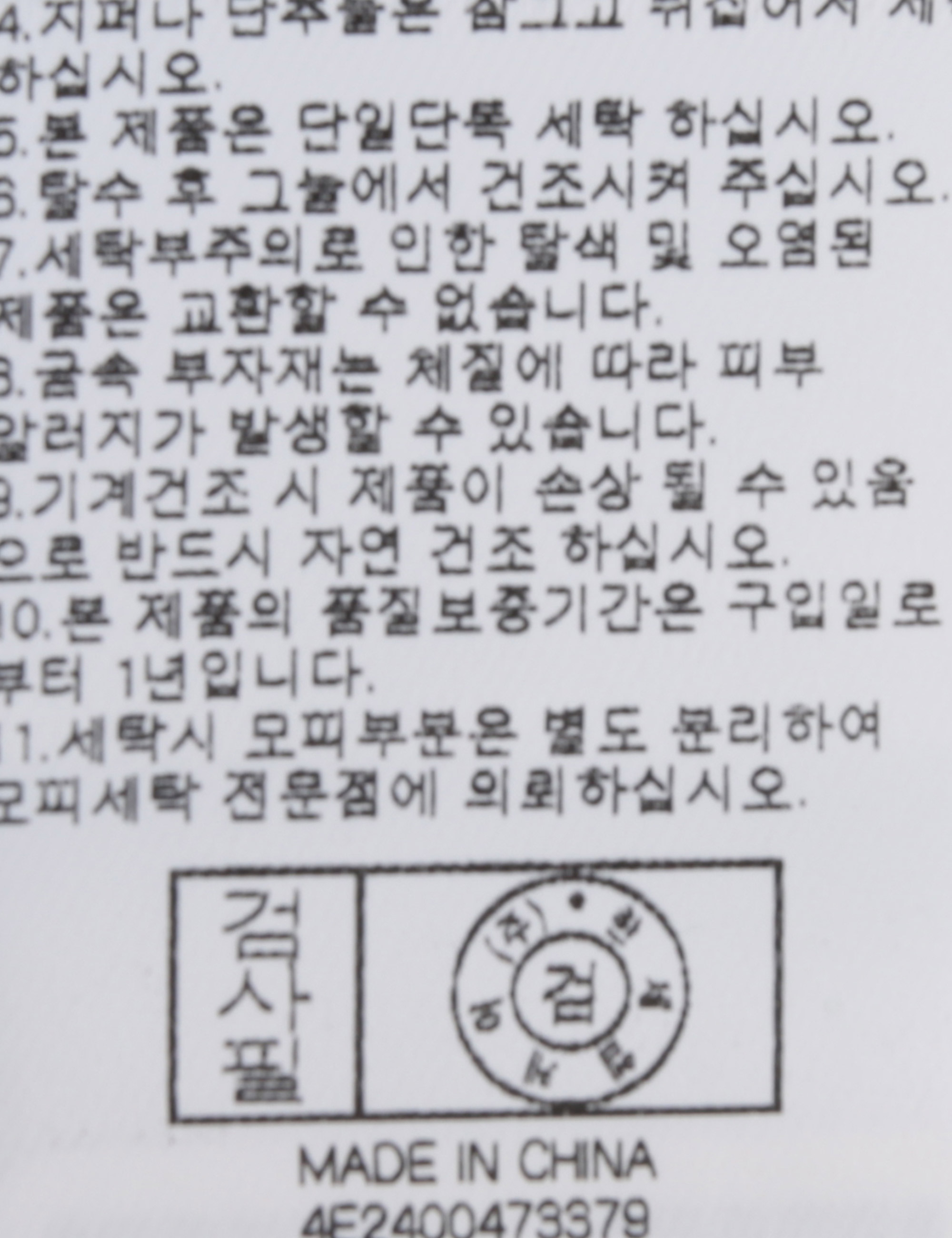 | 세탁방법 및 취급시 주의사항 | 본 제품은 손세탁 하십시오.(케어라벨참고) |