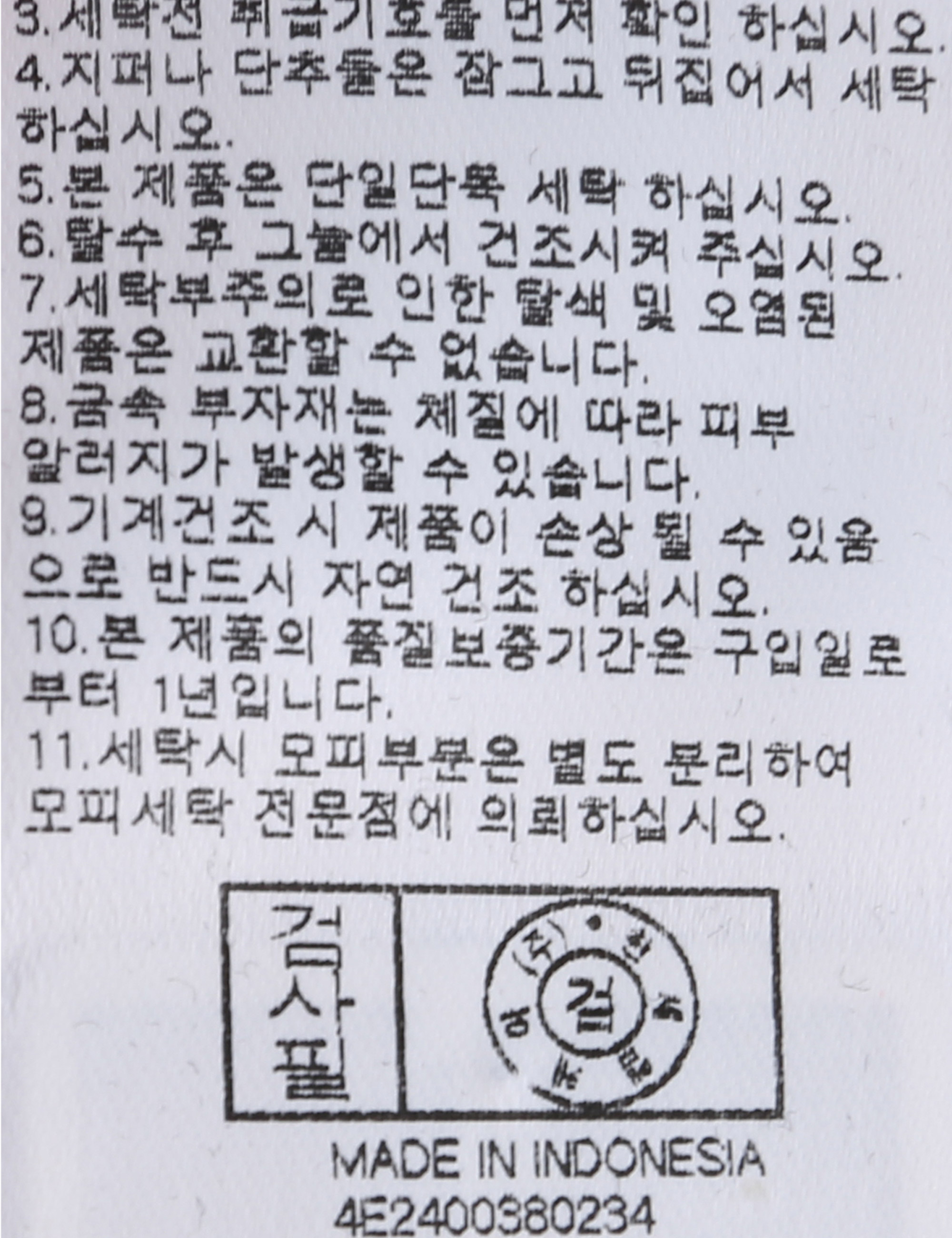 | 세탁방법 및 취급시 주의사항 | 본 제품은 손세탁 하십시오.(케어라벨참고) |