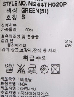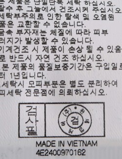 | 세탁방법 및 취급시 주의사항 | 본 제품은 손세탁 하십시오.(케어라벨참고) |