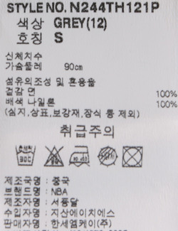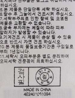 | 세탁방법 및 취급시 주의사항 | 본 제품은 손세탁 하십시오.(케어라벨참고) |