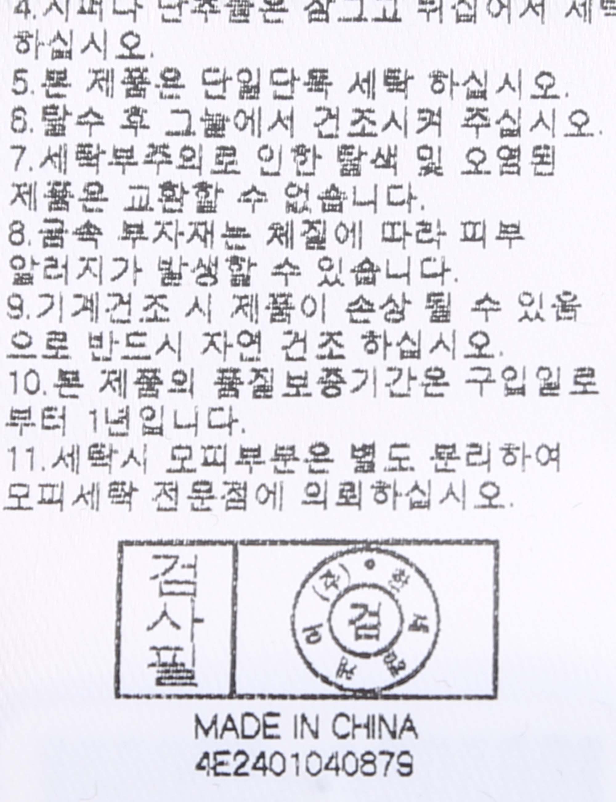 | 세탁방법 및 취급시 주의사항 | 본 제품은 손세탁 하십시오.(케어라벨참고) |
