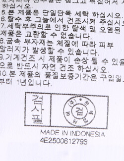 | 세탁방법 및 취급시 주의사항 | 본 제품은 손세탁 하십시오.(케어라벨참고) |