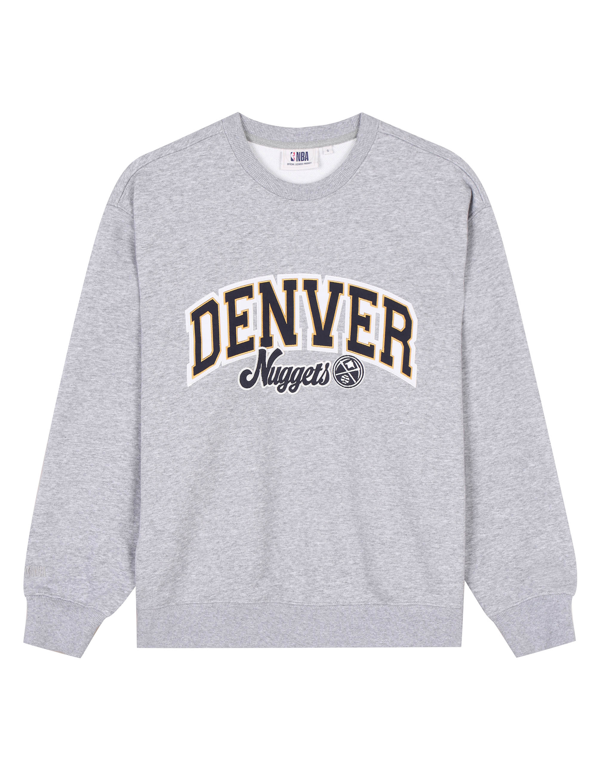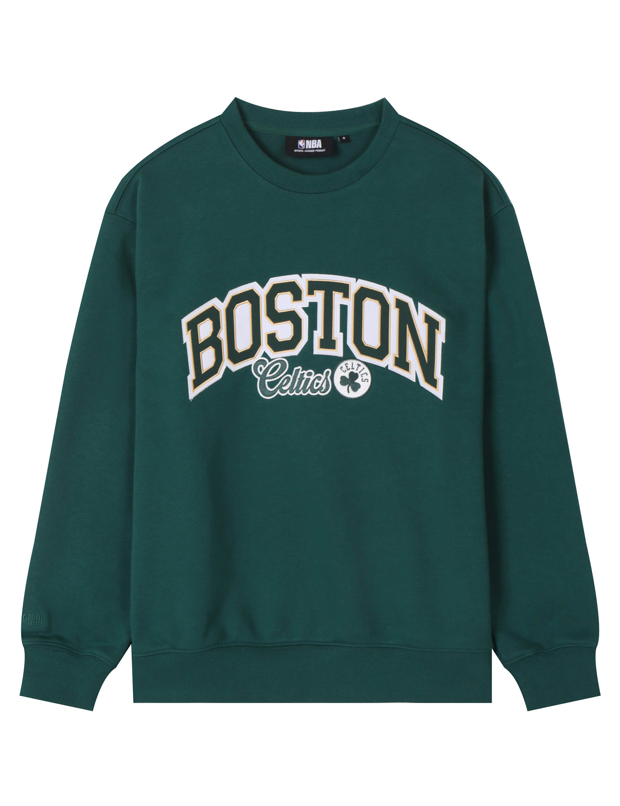 봄 간절기 시즌에 가볍게 착용하기 좋은 루즈핏의 맨투맨으로 아치형 팀로고를 아플리케와 직자수 기법으로 작업