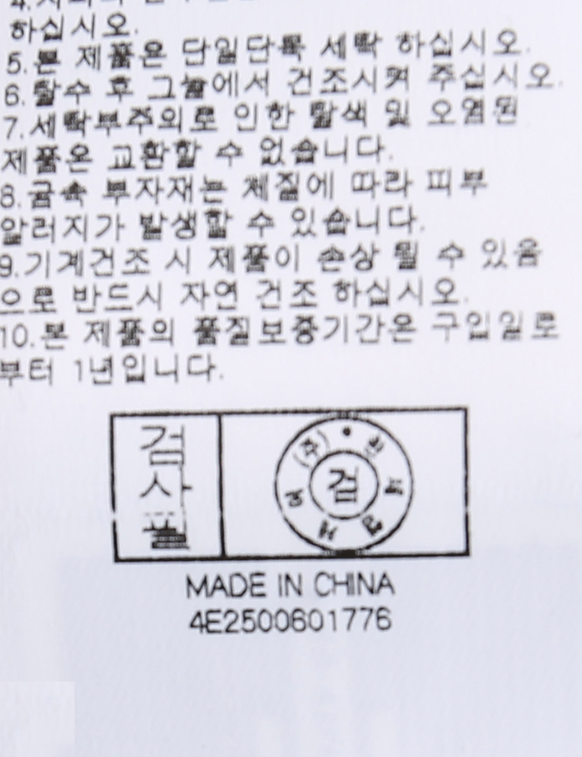 | 세탁방법 및 취급시 주의사항 | 본 제품은 손세탁 하십시오.(케어라벨참고) |