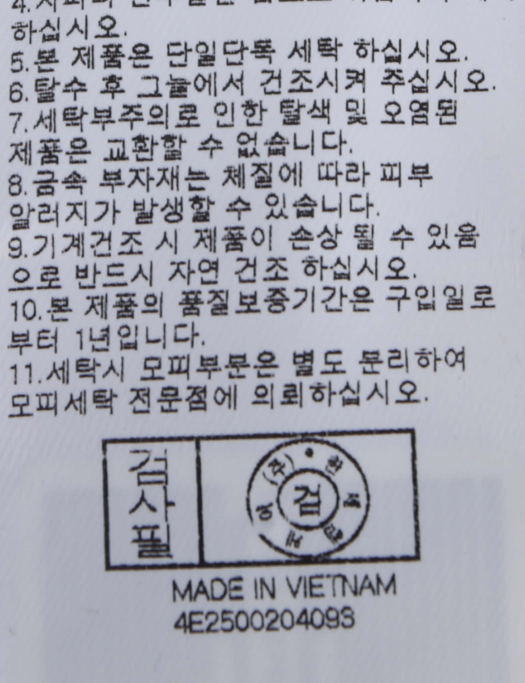 | 세탁방법 및 취급시 주의사항 | 본 제품은 손세탁 하십시오.(케어라벨참고) |