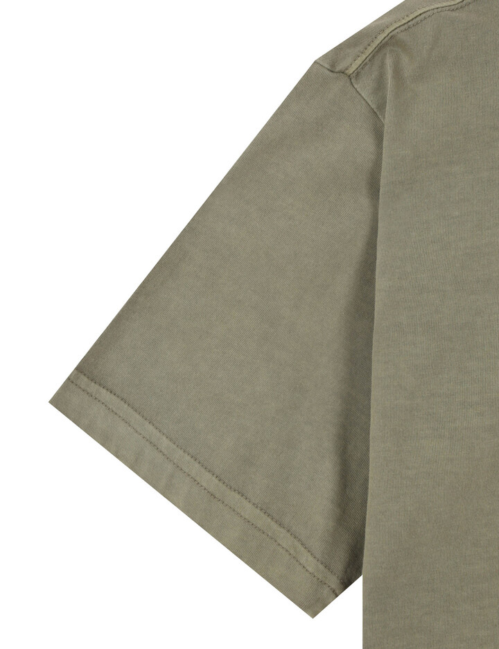 왼가슴 등판에 빈티지 무드의 페이즐리 아트웍과 빈티지 무드의 색감과 워싱느낌을 준 반팔 티셔츠
