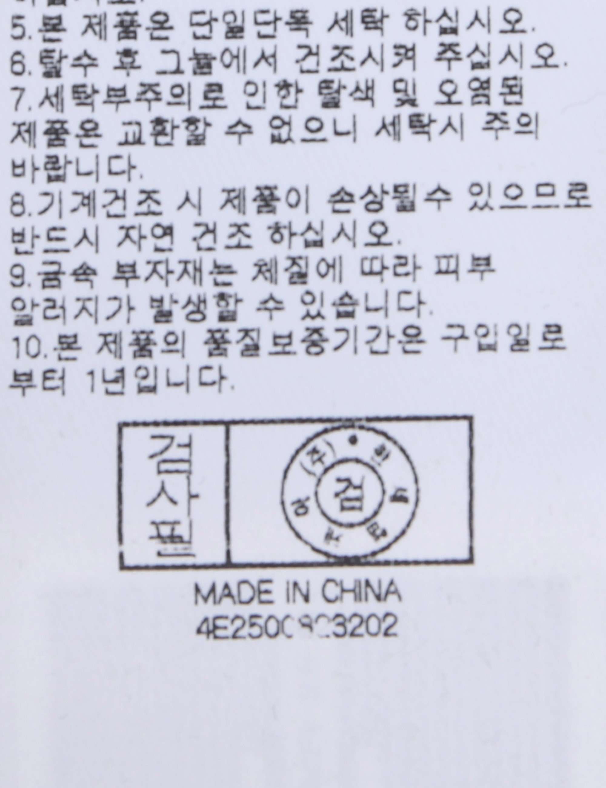 | 세탁방법 및 취급시 주의사항 | 중성세제로 단 시간내에 세탁하십시오.(케어라벨참고) |