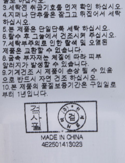 | 세탁방법 및 취급시 주의사항 | 본 제품은 손세탁 하십시오.(케어라벨참고) |