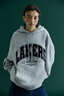 코듀로이 아플리케의 대학무드의 아치형 그래픽의 기모 후드 티셔츠