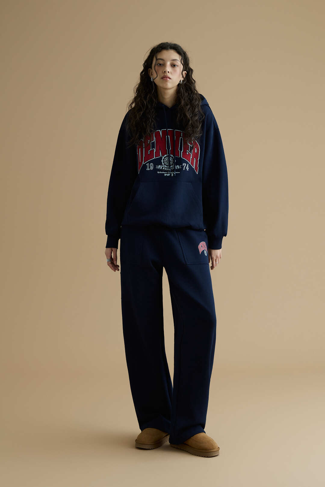 DEN 기모 아치 레터링 후드 티셔츠(N254TH020P)