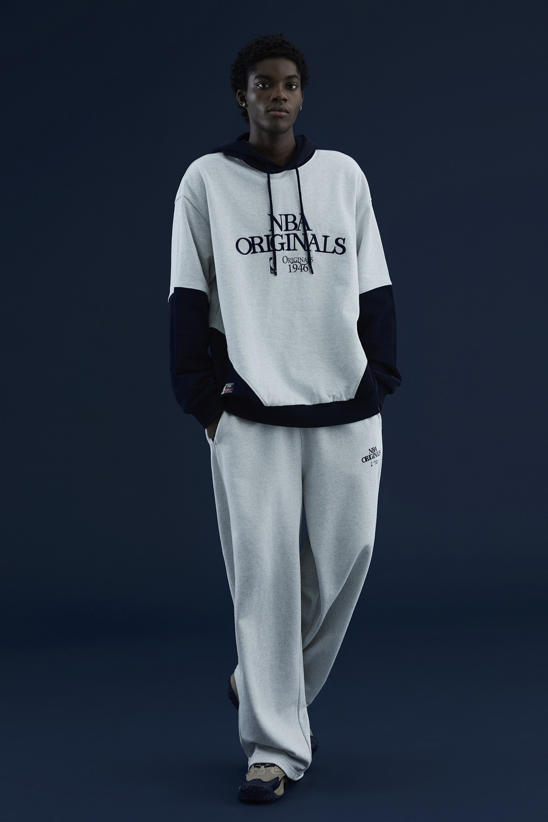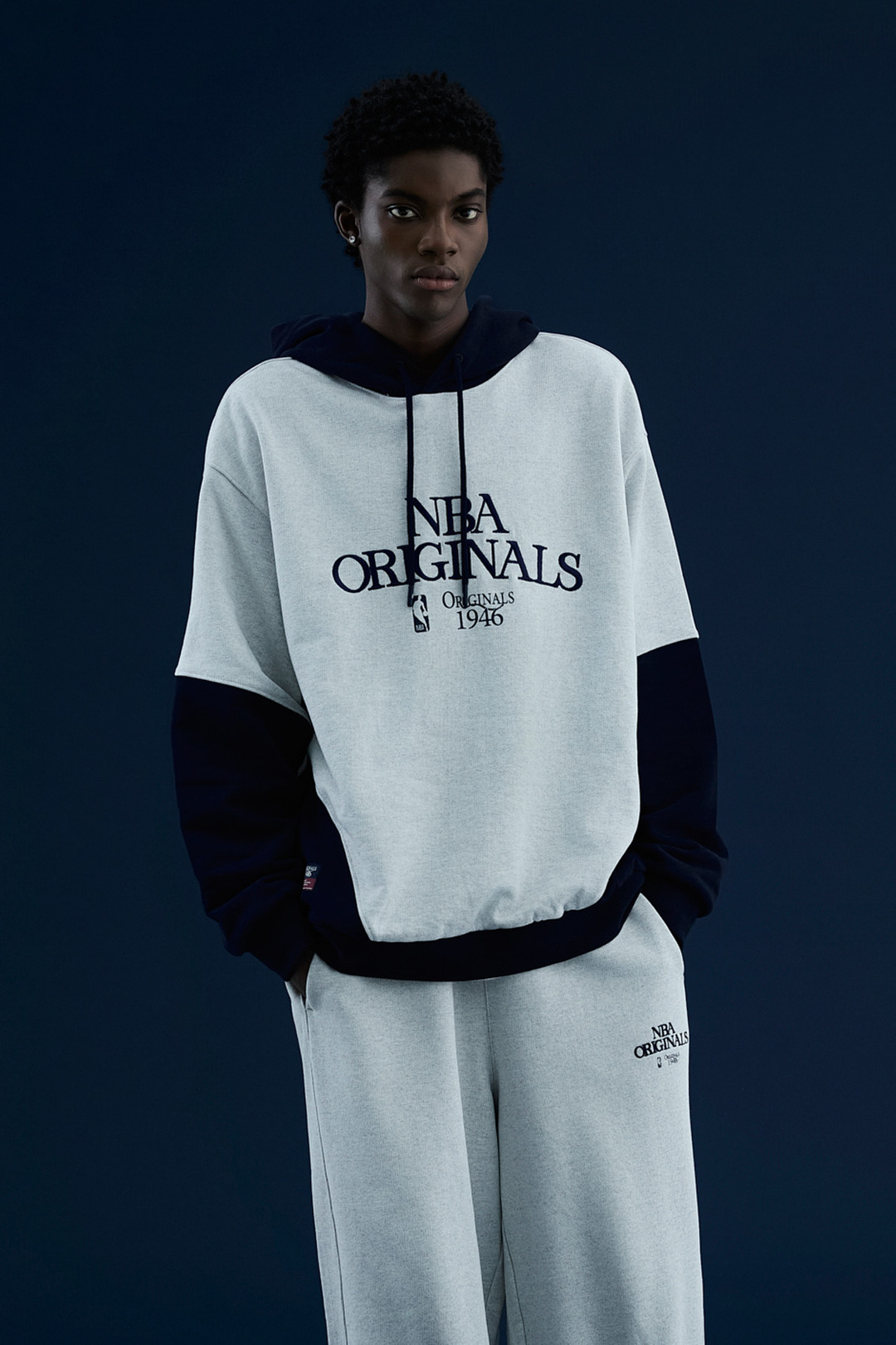 NBA 오리지널리티 무드를 보여주는아플리케 후드 집업