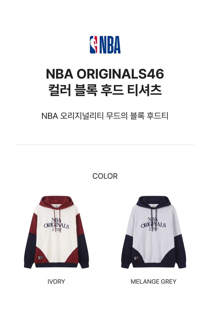 상품명 NBA ORIGINALS46 컬러 블록 후드 티셔츠(N254TH052P)