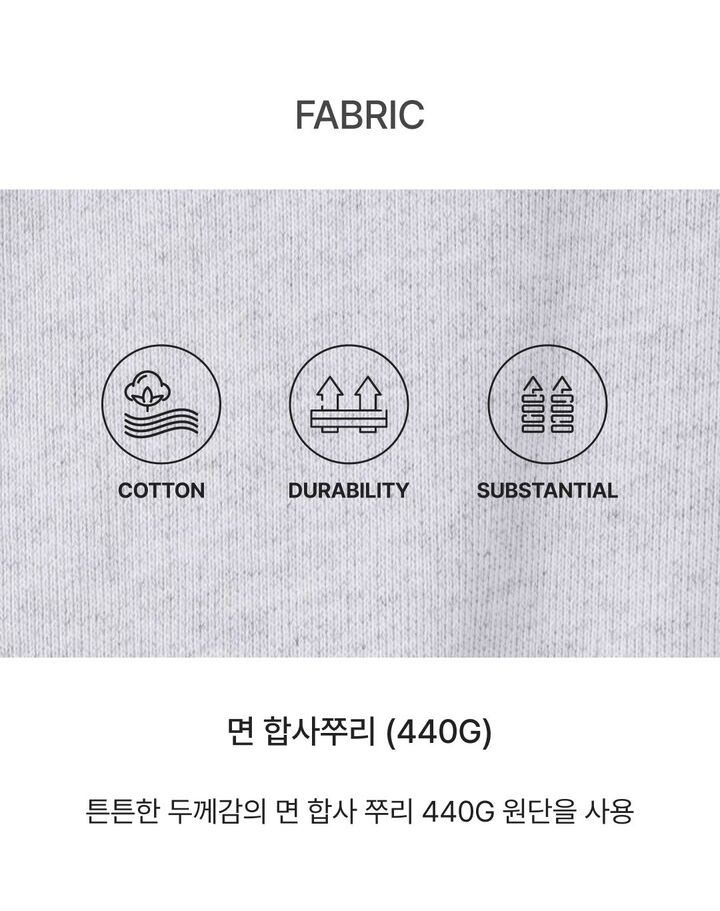 제품소재 [겉감1]면100% [겉감2]면95% 폴리우레탄5% [배색]면65% 폴리에스터35%