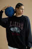 - TIP-OFF 모티브 점프볼 형상과 농구공, 소매에 팀 레터링이 자수로 표현된 그래픽이 포인트
