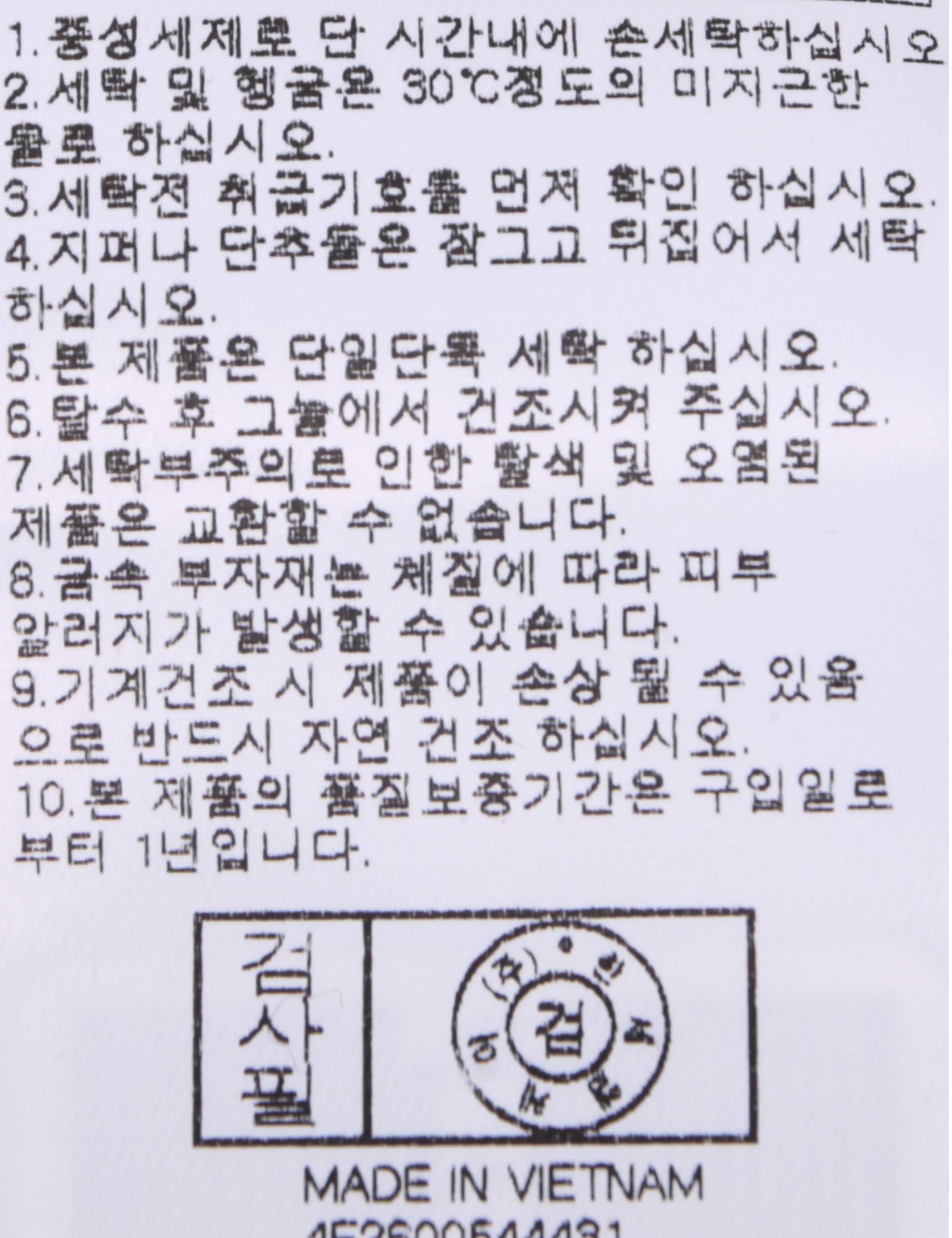 | 세탁방법 및 취급시 주의사항 | 본 제품은 손세탁 하십시오.(케어라벨참고) |
