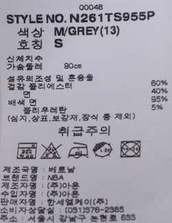 - 가슴에 NBA 로고맨을 견고한 자수 기법을 활용하여 표현하고 와끼에 NBA 시그니쳐 로고를 라벨링하여 포인트를 준 스타일