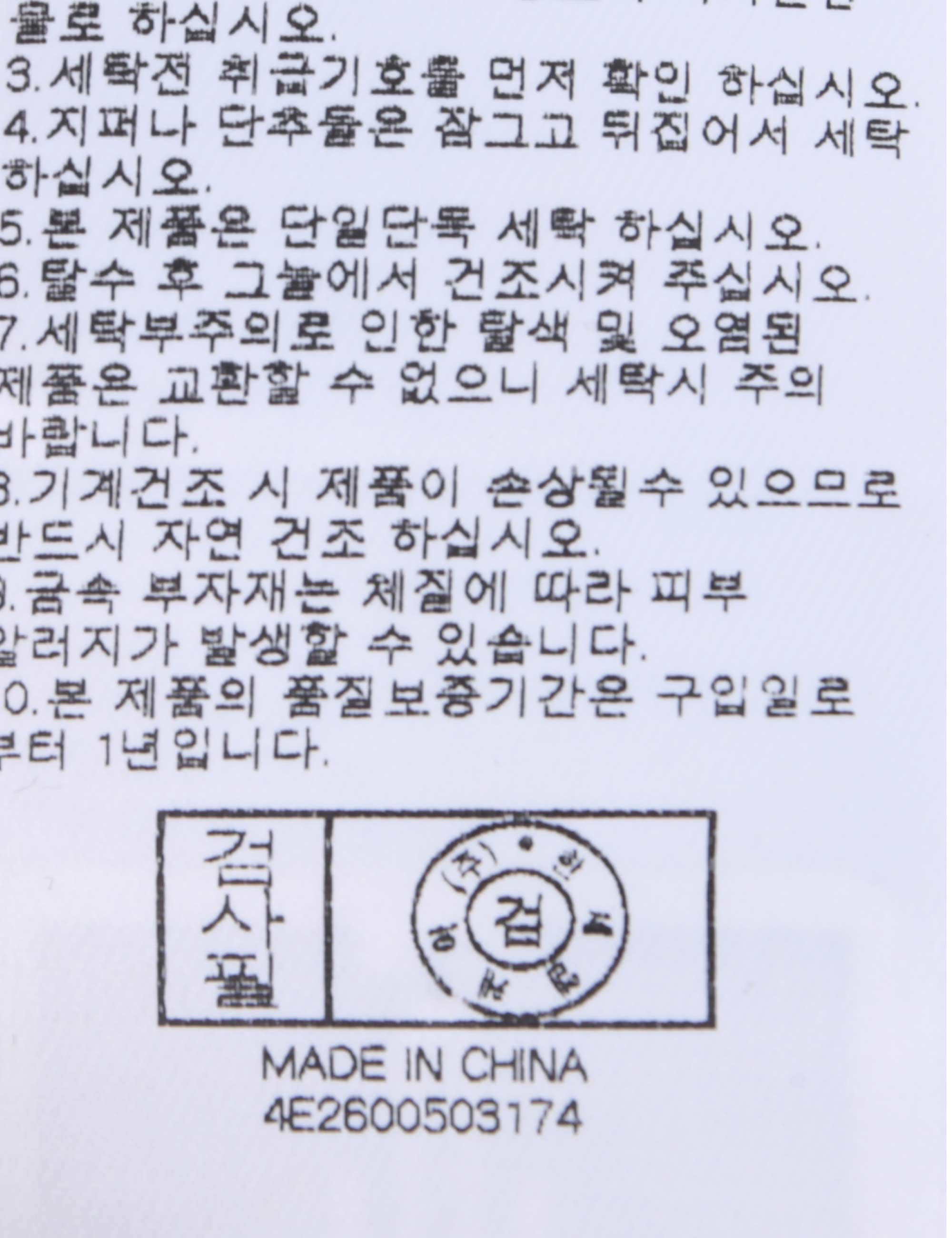 | 세탁방법 및 취급시 주의사항 | 중성세제로 단 시간내에 세탁하십시오.(케어라벨참고) |