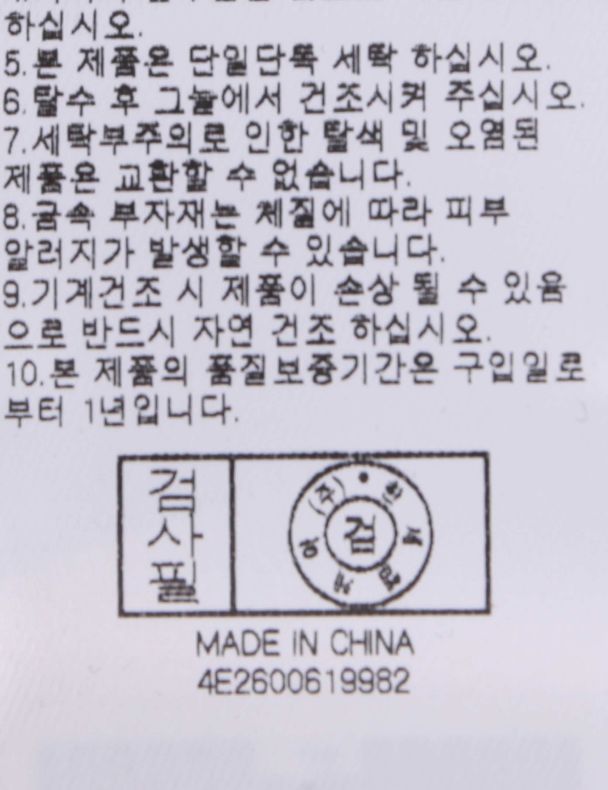 | 세탁방법 및 취급시 주의사항 | 본 제품은 손세탁 하십시오.(케어라벨참고) |