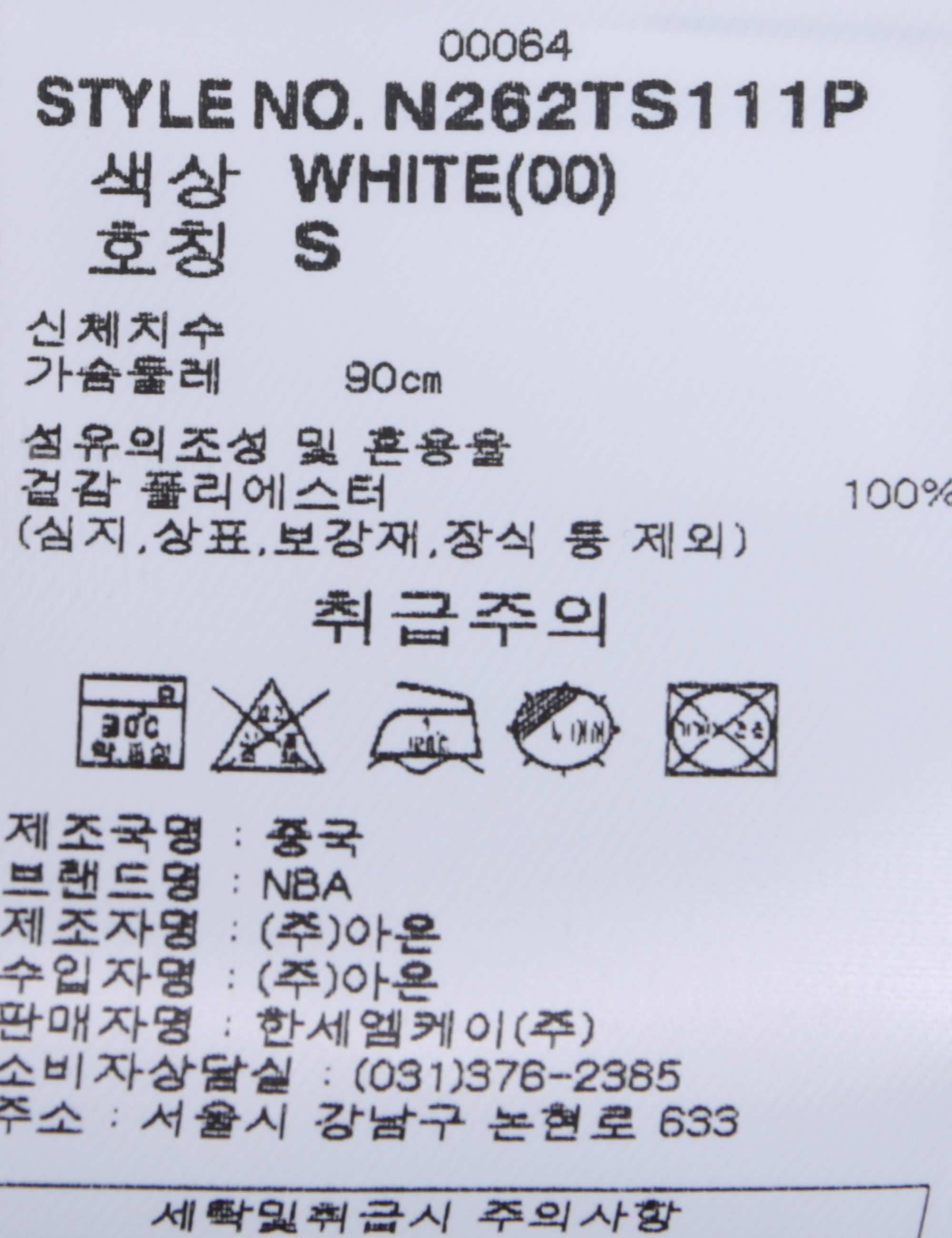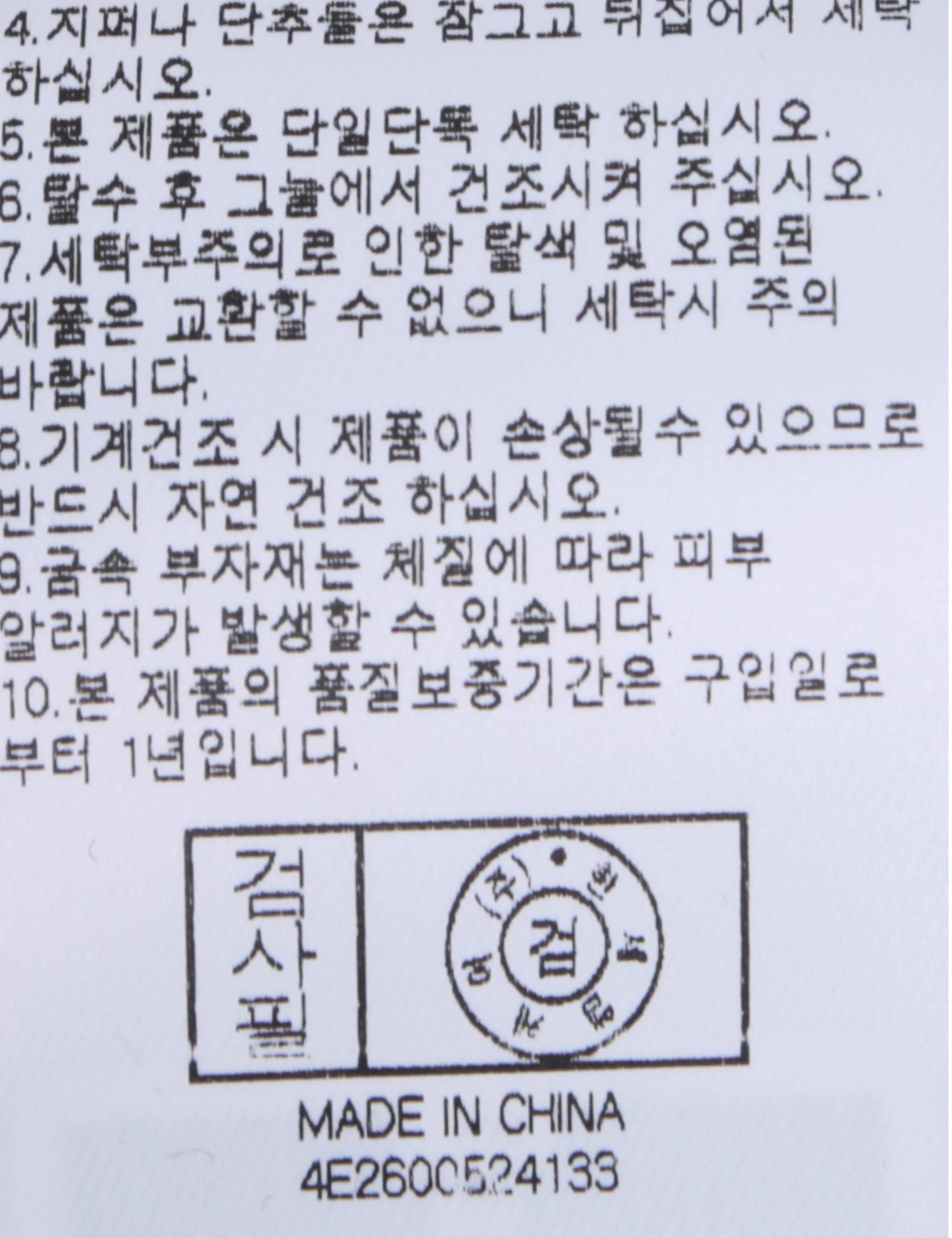 | 세탁방법 및 취급시 주의사항 | 중성세제로 단 시간내에 세탁하십시오.(케어라벨참고) |