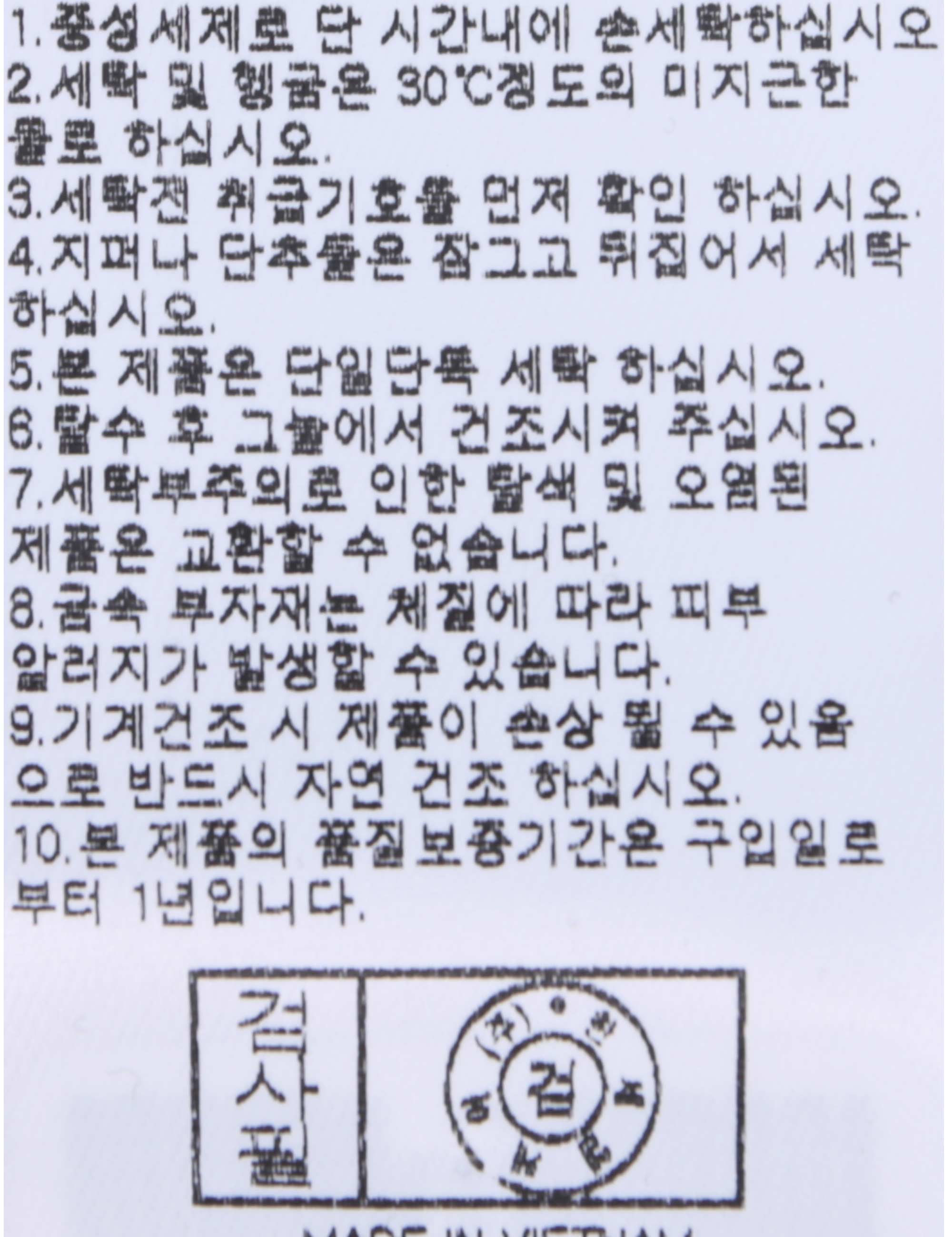 | 세탁방법 및 취급시 주의사항 | 본 제품은 손세탁 하십시오.(케어라벨참고) |
