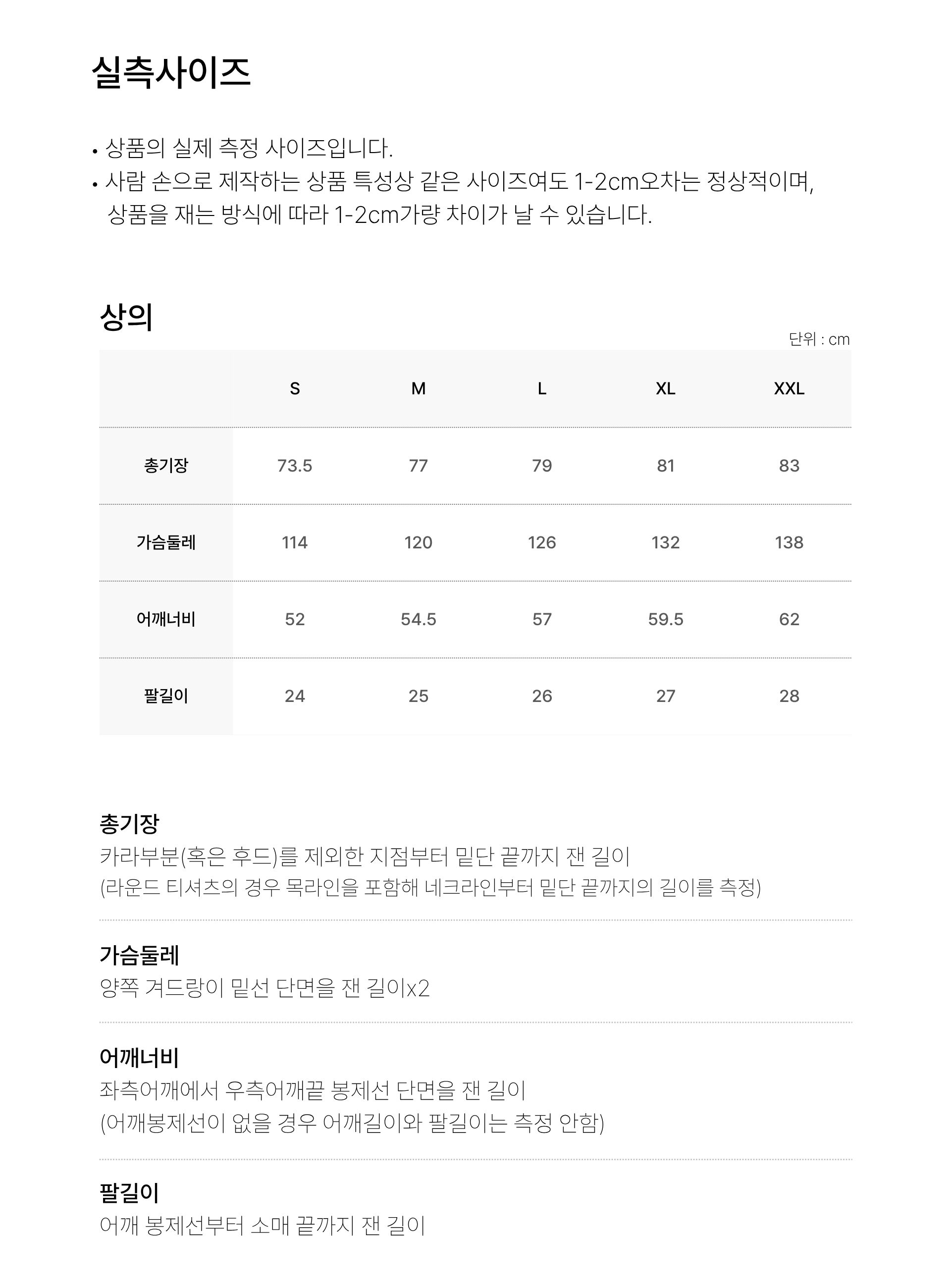 치수 S,M,L,XL,XXL