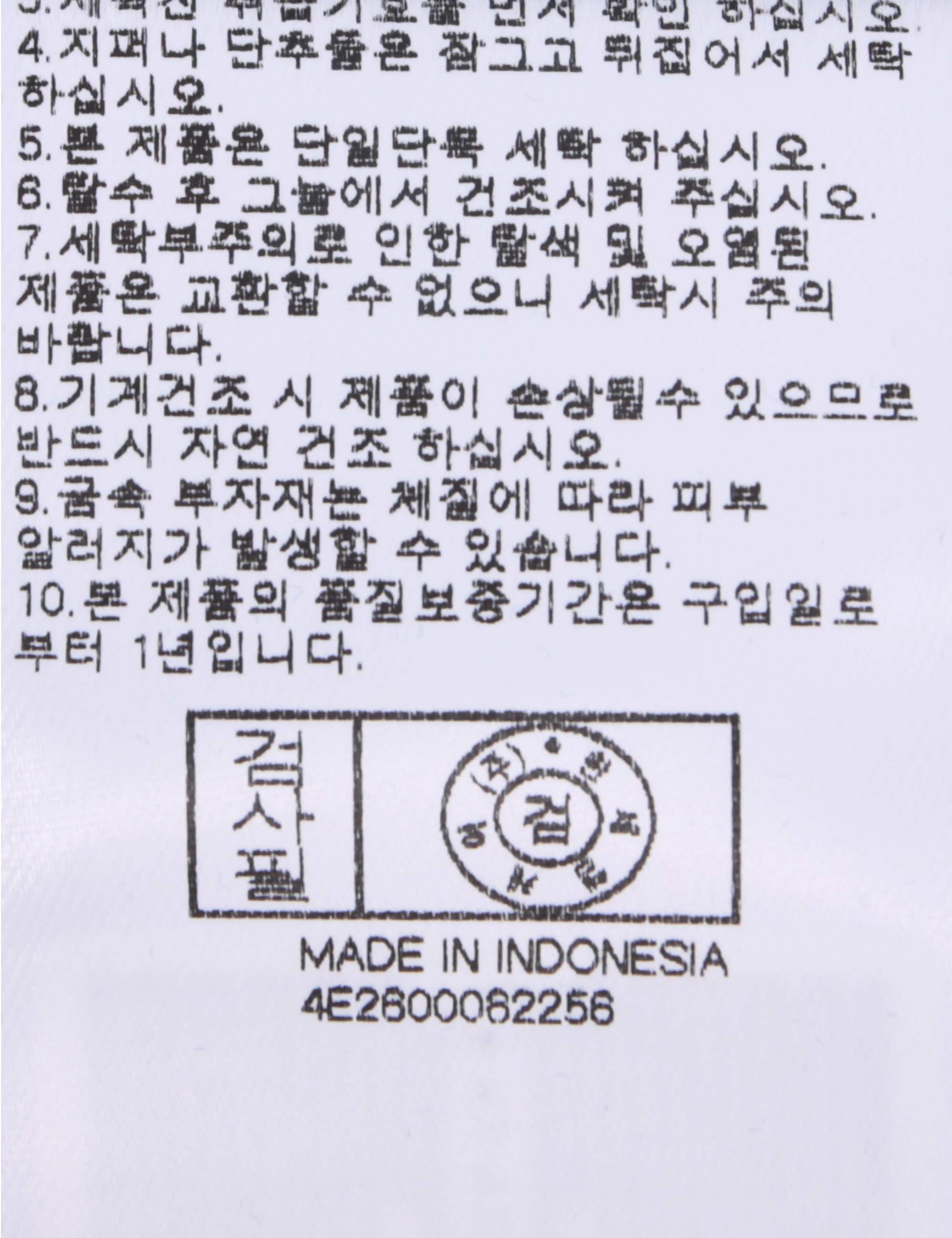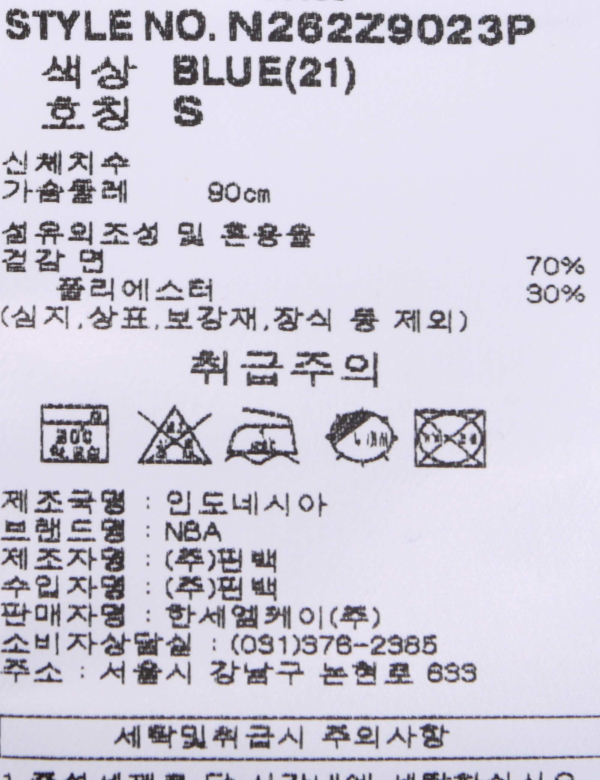 | 세탁방법 및 취급시 주의사항 | 중성세제로 단 시간내에 세탁하십시오.(케어라벨참고) |