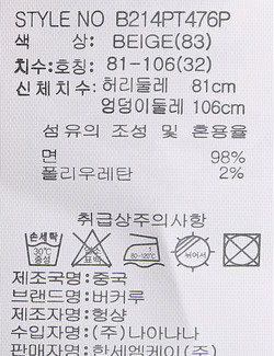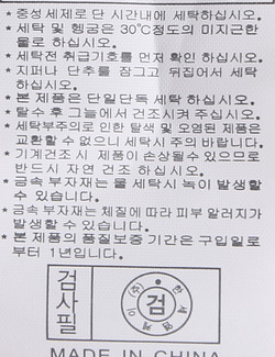 | 세탁방법 및 취급시 주의사항 | 본 제품은 손세탁 하십시오.(케어라벨참고) |