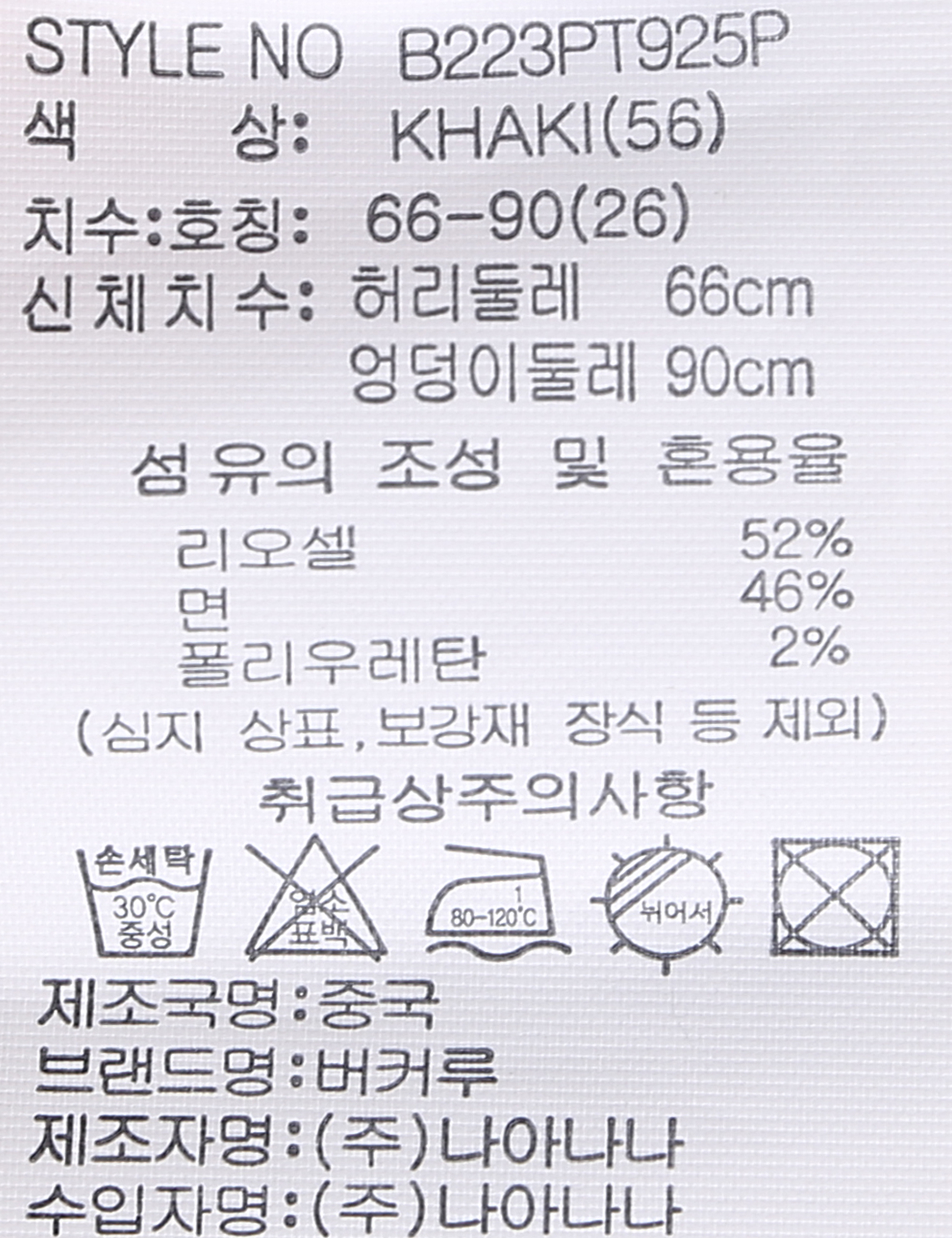 제품소재 [겉감]리오셀52% 면46% 폴리우레탄2%