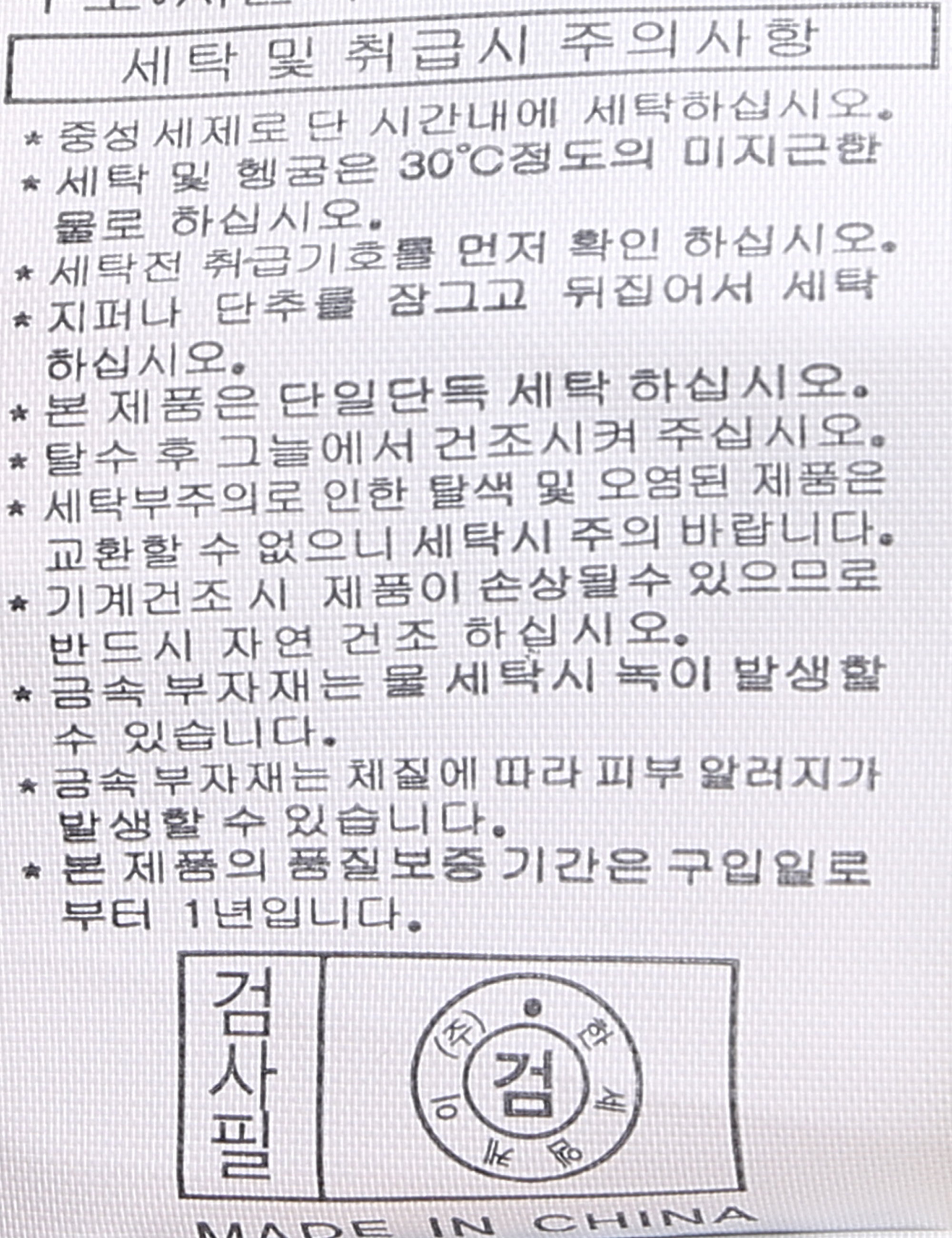 세탁방법 및 취급시 주의사항 본 제품은 손세탁 하십시오.(케어라벨참고)