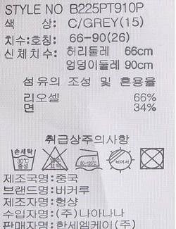 | 세탁방법 및 취급시 주의사항 | 본 제품은 손세탁 하십시오.(케어라벨참고) |