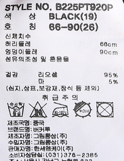 | 세탁방법 및 취급시 주의사항 | 본 제품은 손세탁 하십시오.(케어라벨참고) |