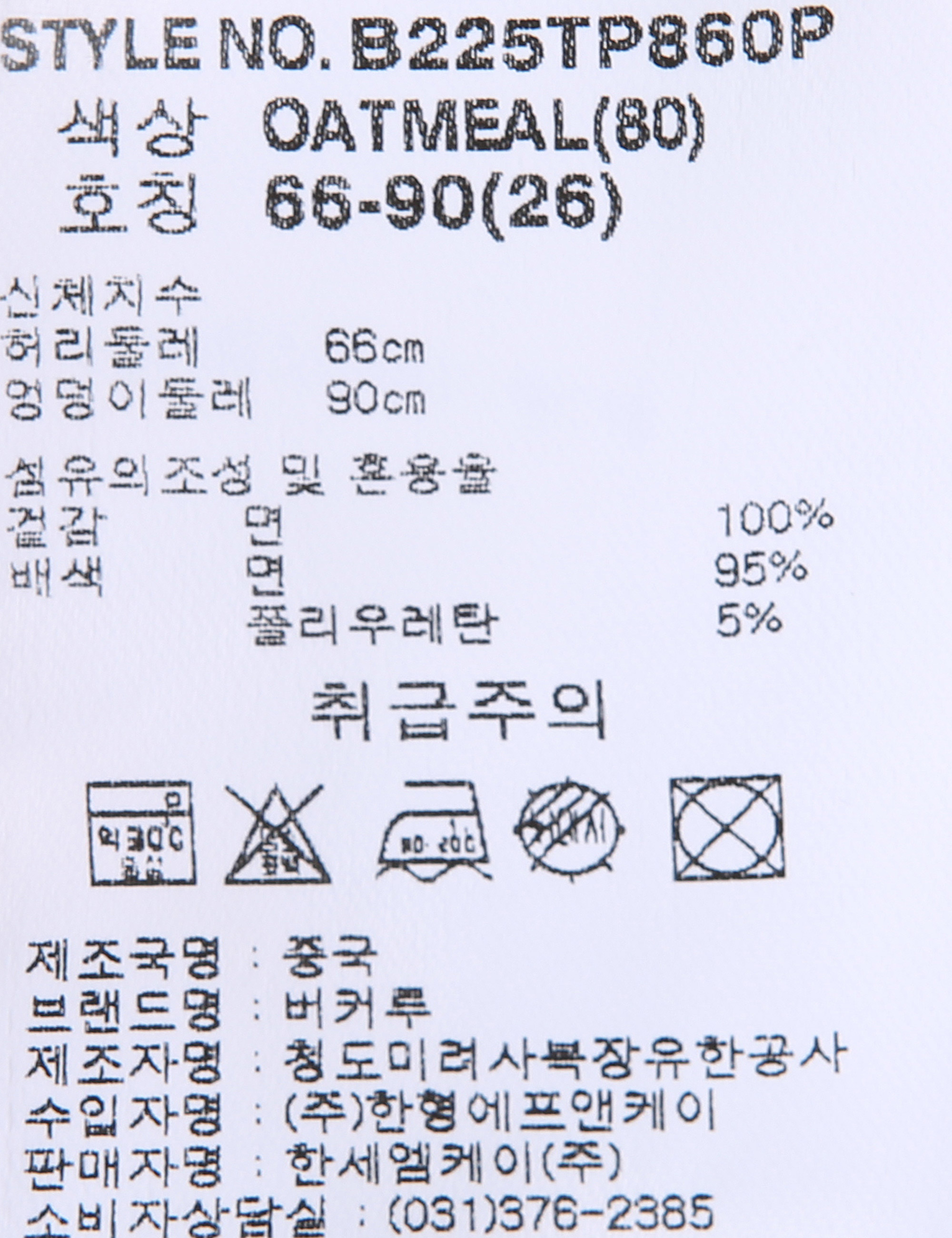 | 세탁방법 및 취급시 주의사항 | 중성세제로 단 시간내에 세탁하십시오.(케어라벨참고) |