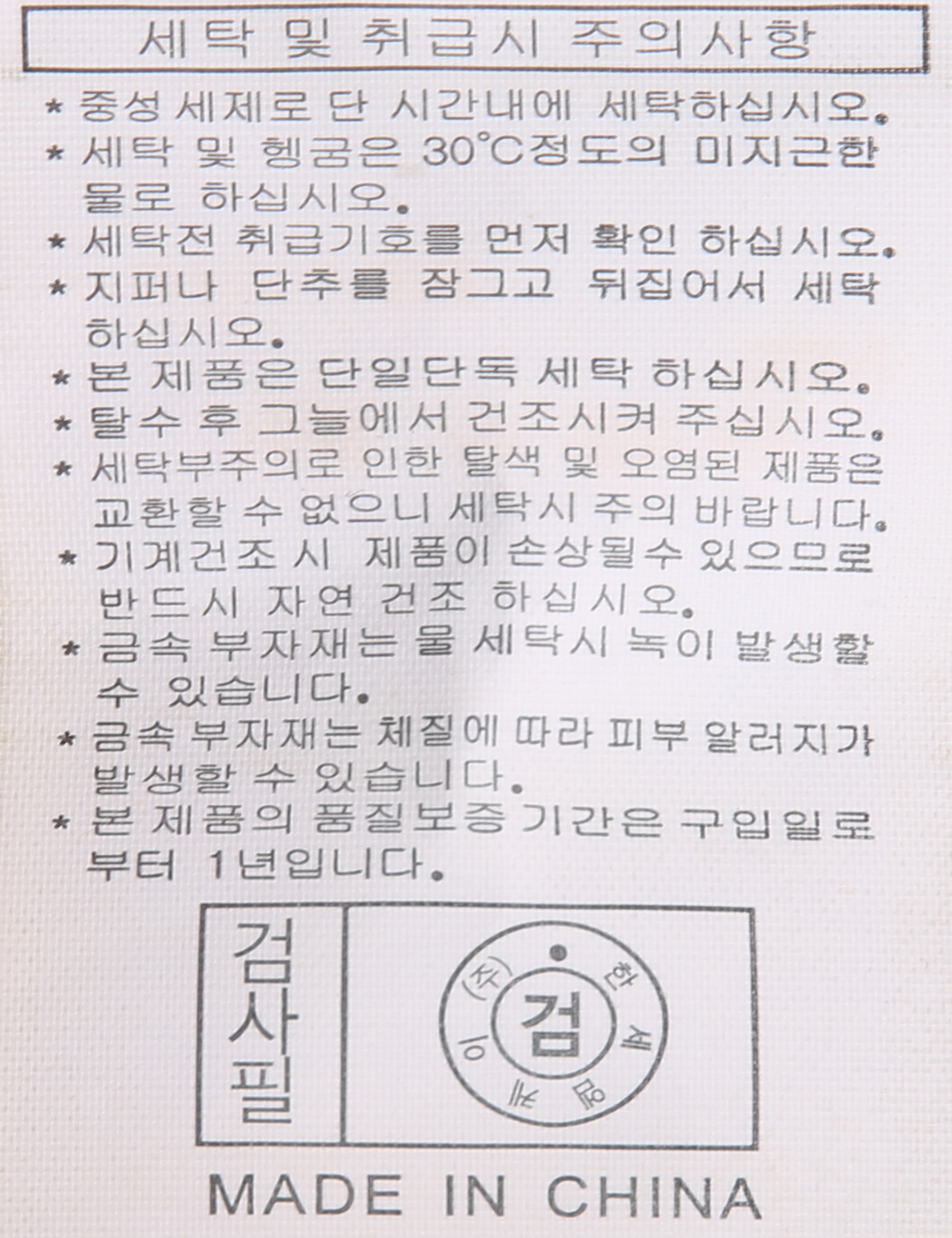 | 세탁방법 및 취급시 주의사항 | 본 제품은 손세탁 하십시오.(케어라벨참고) |