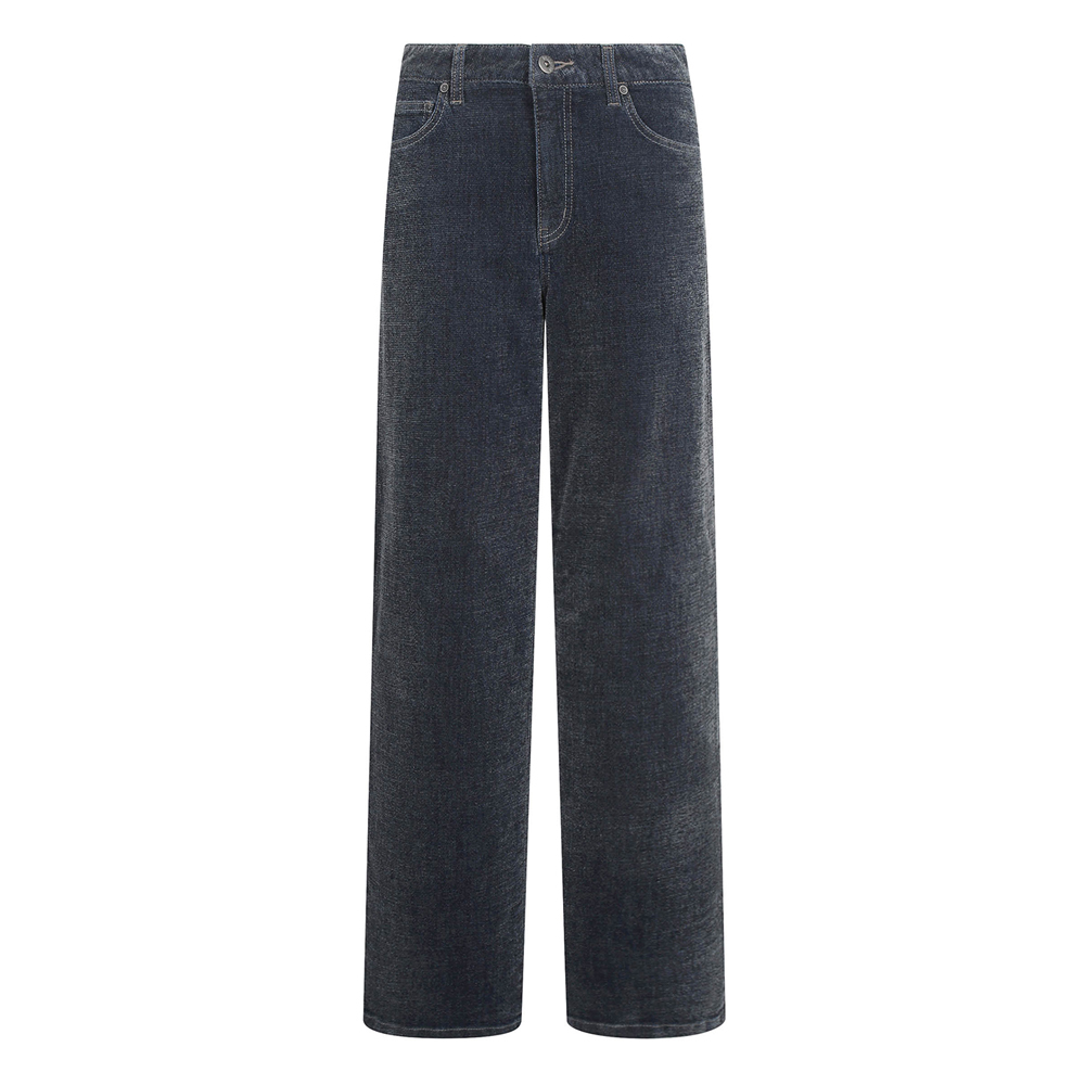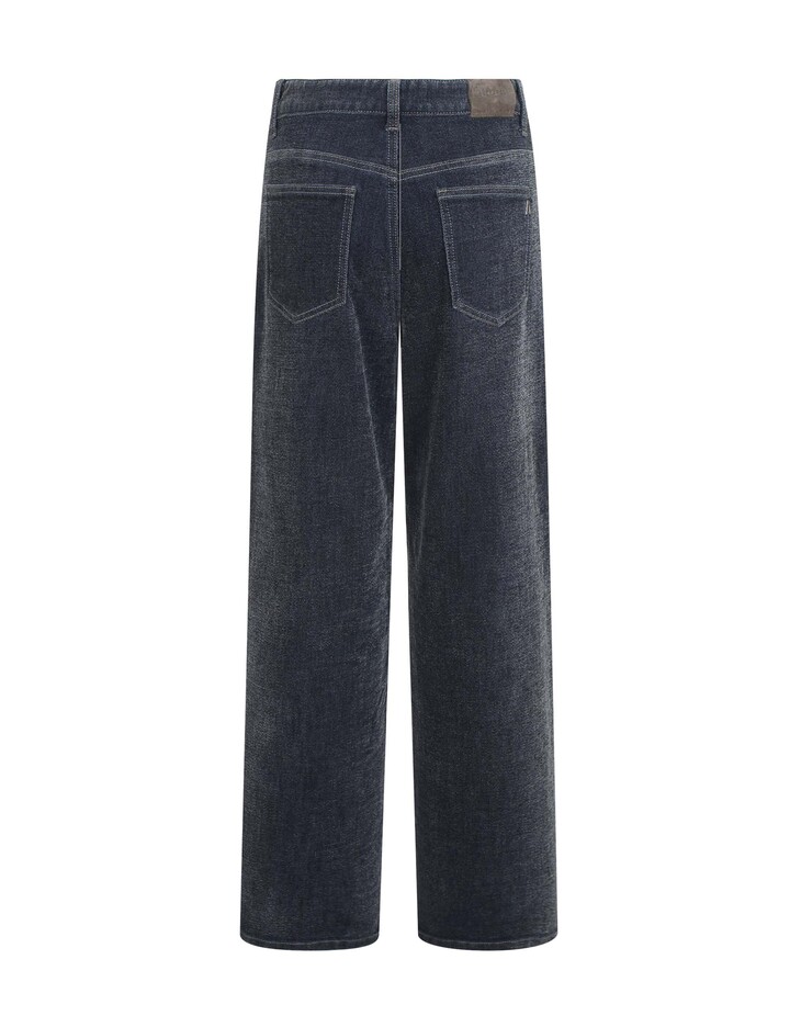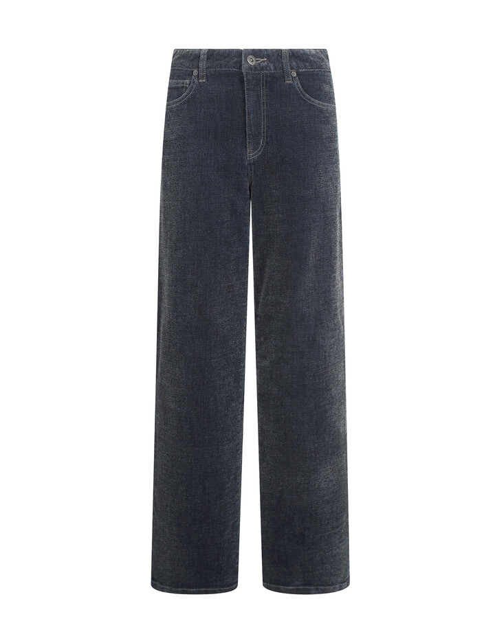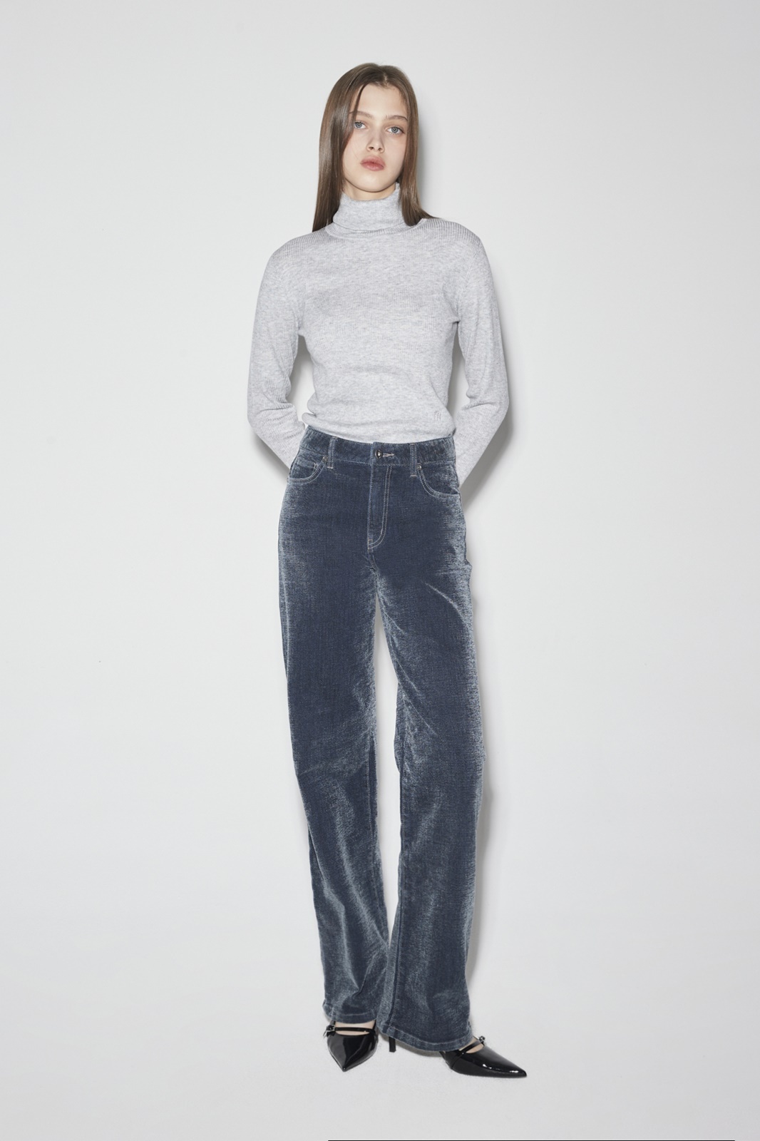 *로우라이즈 핏감의 힙부터 밑단까지 자연스럽게 넓어지는 루즈 와이드 데님 팬츠로 벨벳 데님 소재를 사용하였으며,