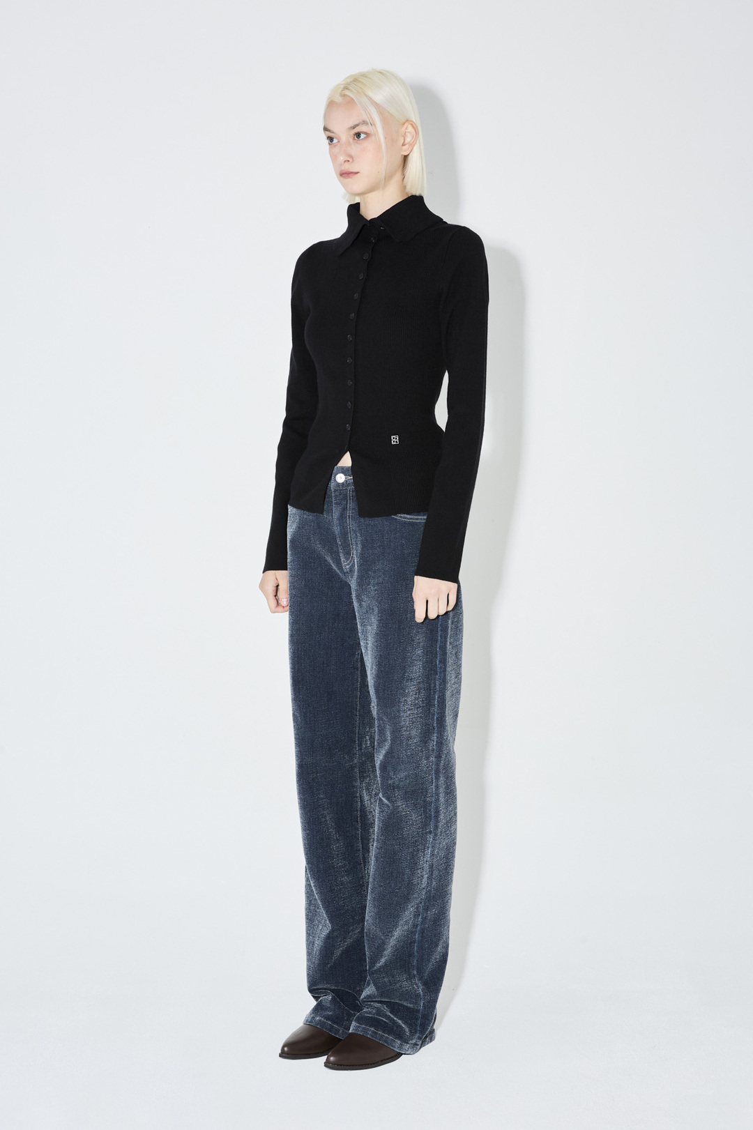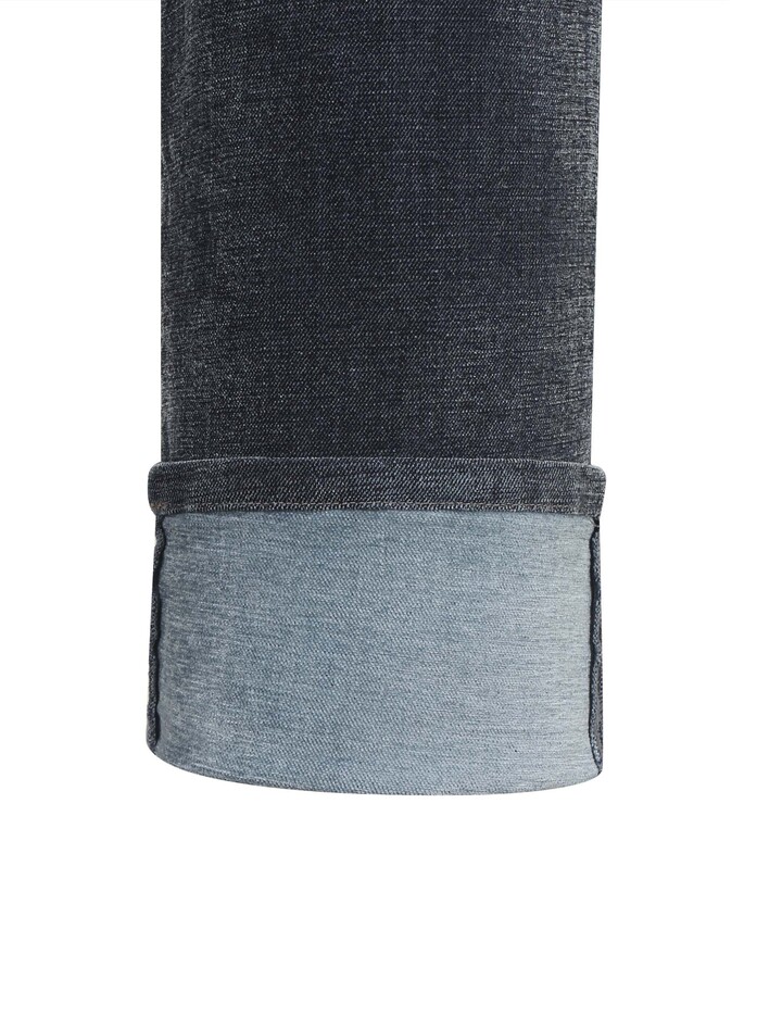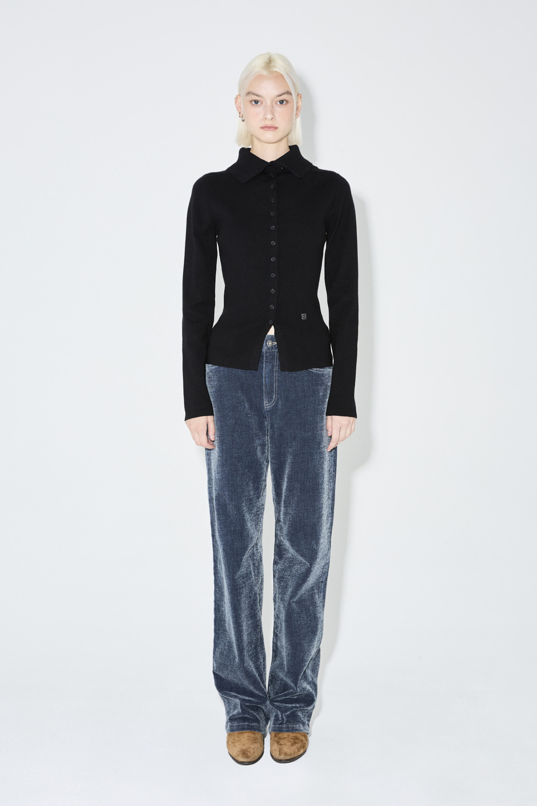 *로우라이즈 핏감의 힙부터 밑단까지 자연스럽게 넓어지는 루즈 와이드 데님 팬츠로 벨벳 데님 소재를 사용하였으며,